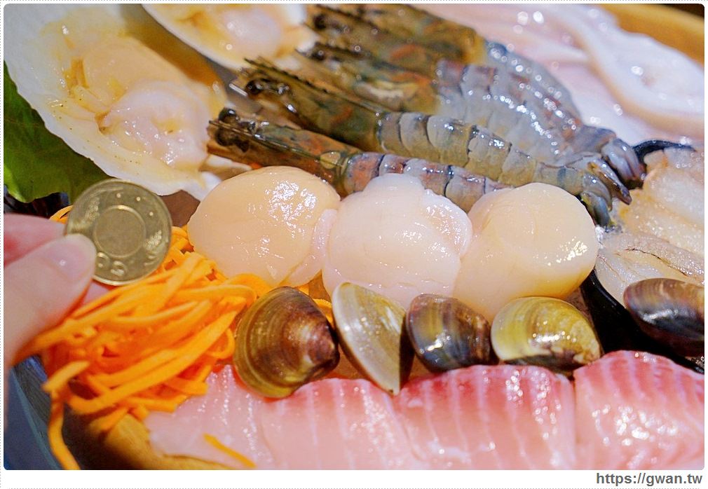 ▼除了肉片超吸睛之外,這裡的海鮮也不遑多讓呀!看看這「豪華海鮮拼盤」$798元,超大一盆海鮮,裡面有扇貝、干貝、草蝦、蟹管肉、鯛魚、中卷、蛤蜊,海鮮都非常新鮮,肉質飽滿,吃起來超過癮!