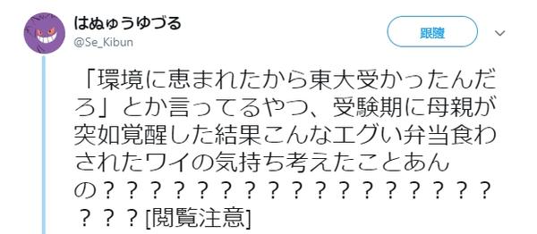 ▼這位就讀於東京大學的高材生網友 @Se_kibun 在推特上分享了自己高中生時期媽媽幫他準備的便當,他在文中表示「『能考上東大都是受到環境恩惠影響?』,說那些話的傢伙快來看看在我備考期間,媽媽幫我做出噁心便當的傑作。」