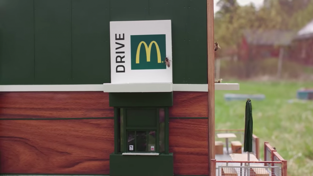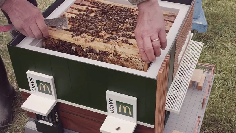 ▼為了幫蜜蜂打造一個友善生存的環境,瑞典幾家麥當勞開始在餐廳的屋頂或者院子裡放置蜂箱,而蜂箱的外形設計就是這種超小的麥當勞餐廳模樣!