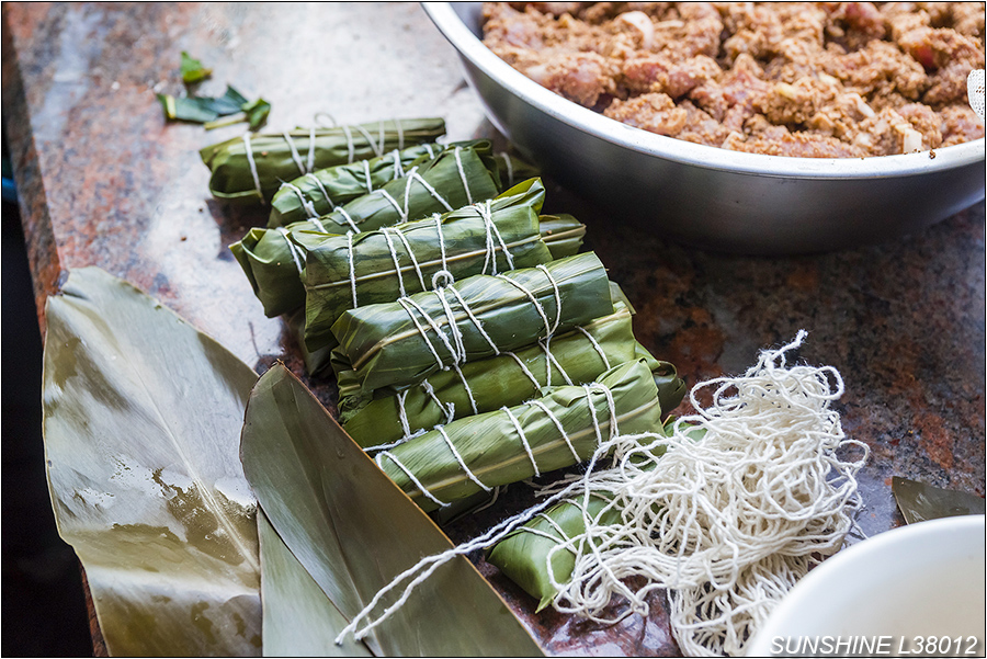 ▼「北部粽」特色是將浸泡過後的米飯與配料一同炒過,包入粽葉後再放入蒸籠蒸熟。有的是「重複蒸煮」也有人「先炒後蒸」,原則上北部粽才是真正台灣發展出來的粽子,做工也相當繁複!