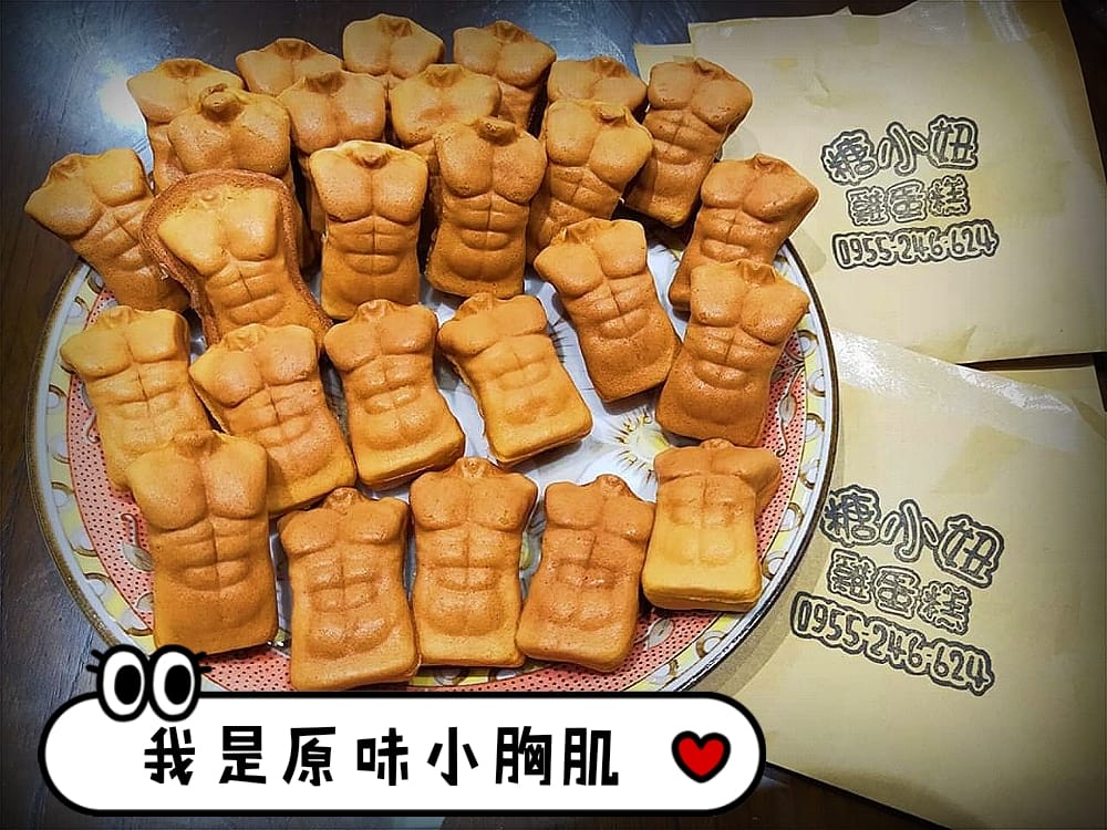 ▼位在桃園中壢的中原夜市裡,有一家「糖小妞雞蛋糕」,別看這店名是個小姑娘的樣子,雞蛋糕的模樣可是姑娘們都愛的小鮮肉造型啊~~在攤位的佈置也是別有用心。
