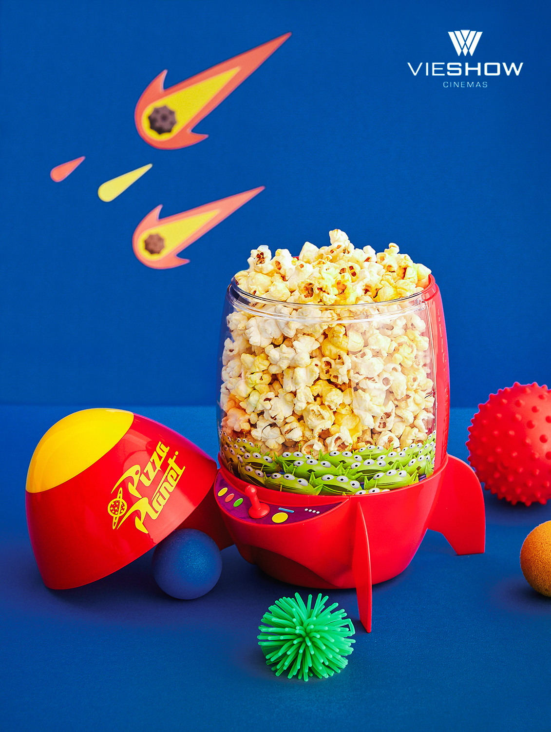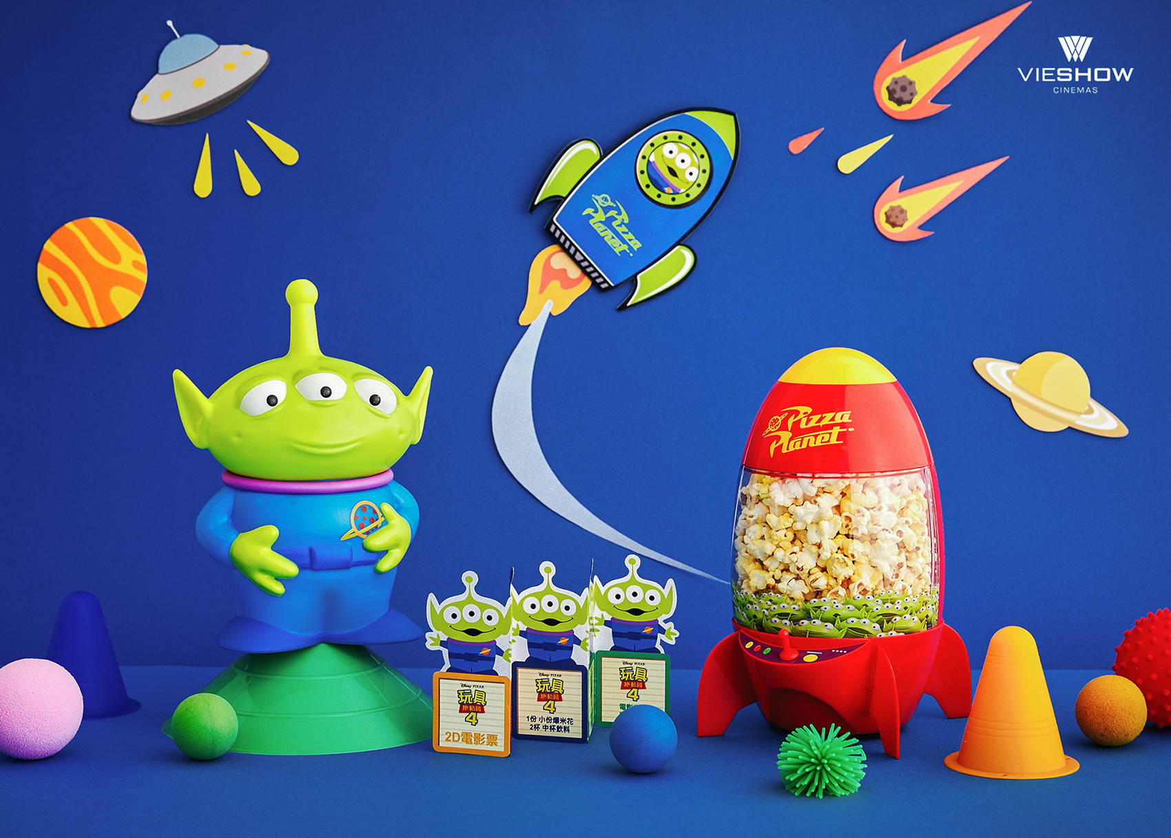 這麼可愛的火箭爆米花和三眼怪造型飲料杯,還有造型電影票夾和貼紙,這根本是為了玩具總動員粉絲設計的呀~~大家一起拿著三眼怪和比薩星球火箭進影廳看電影吧~~~