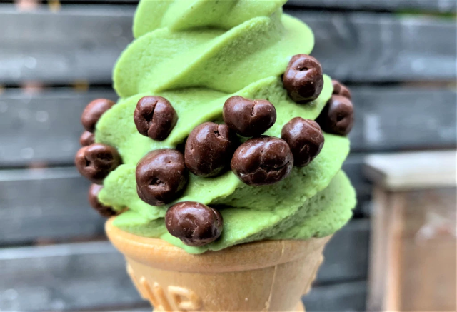 ▼抹茶冰淇淋不稀奇,但與巧克力豆的搭配讓人浮想聯翩,很有視覺衝擊感。