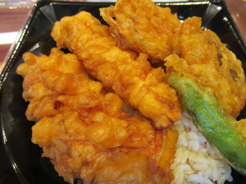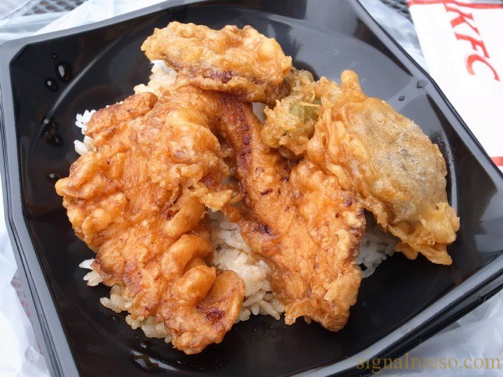 ▼除了招牌炸雞外,還有香菇、地瓜、四季豆等炸物,構成完全就像天丼一樣,唯一的不同就是使用了肯德基自豪的炸雞與獨家麵衣,光這點就打趴一般的天丼!