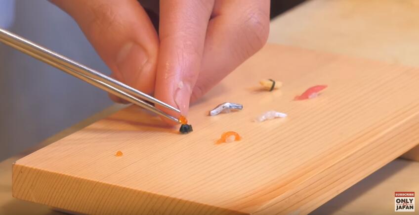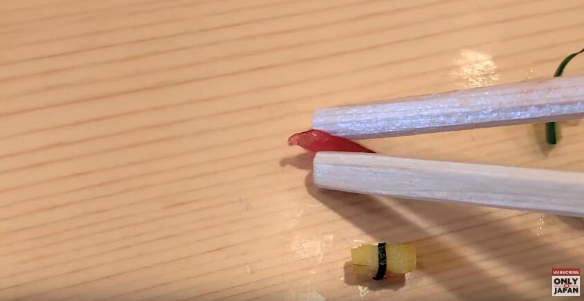 ▼YouTube頻道「Only in Japan」分享的一段影片中,「Takasago Sushi」壽司店的主廚 Yuki Sugeta和他的學徒 Issei Meguro向主持人展示了他們製作微型壽司的神技。