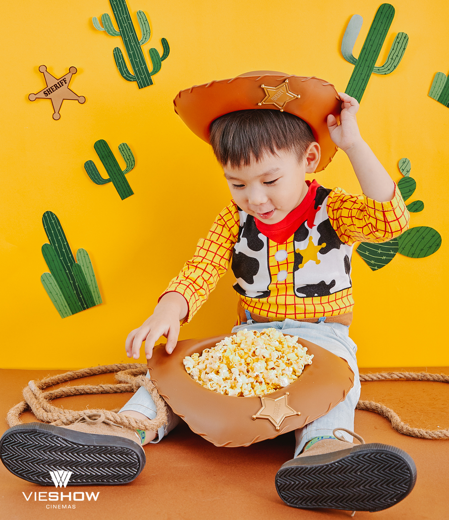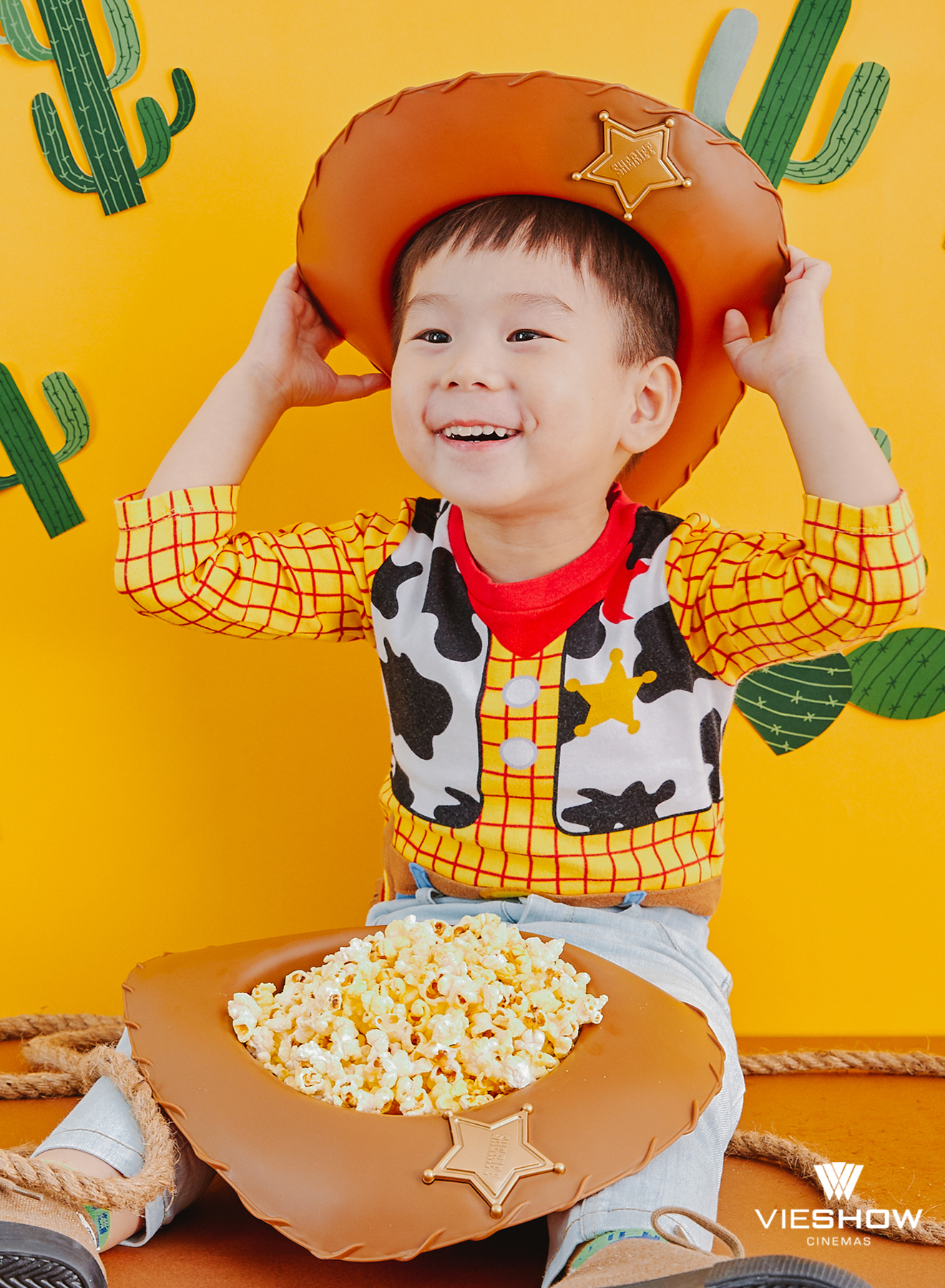 ▼牛仔帽造型爆米花桶容量超大,小朋友真的可以拿來當帽子戴。