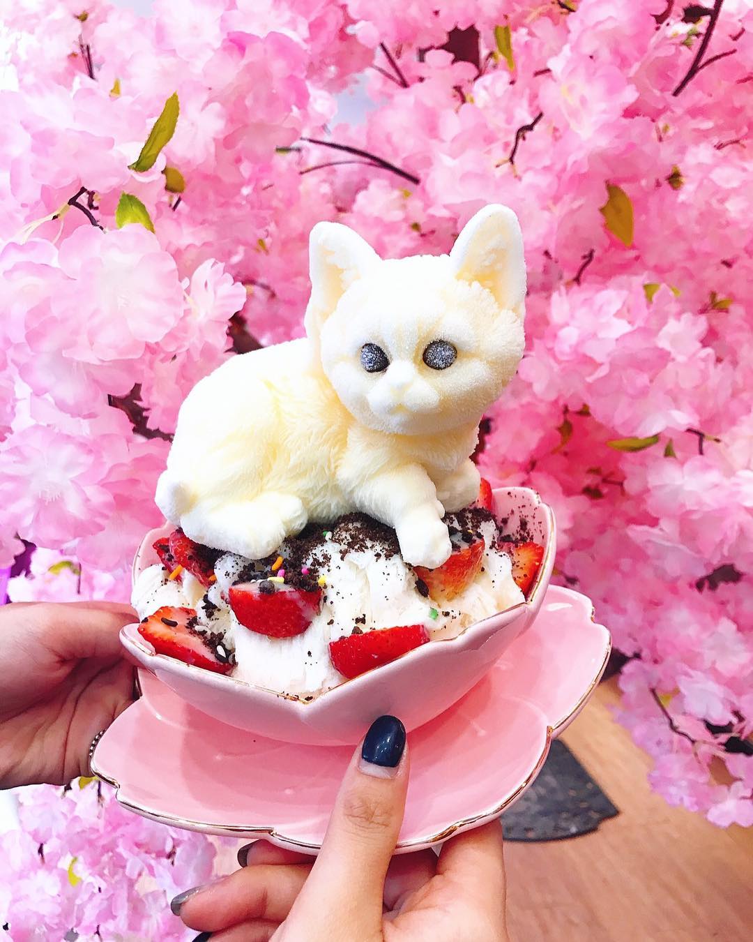 ▼雪白色的貓咪放在雪花冰上,老闆已經不把雪花冰當食物在做,而是做藝術呀!!!