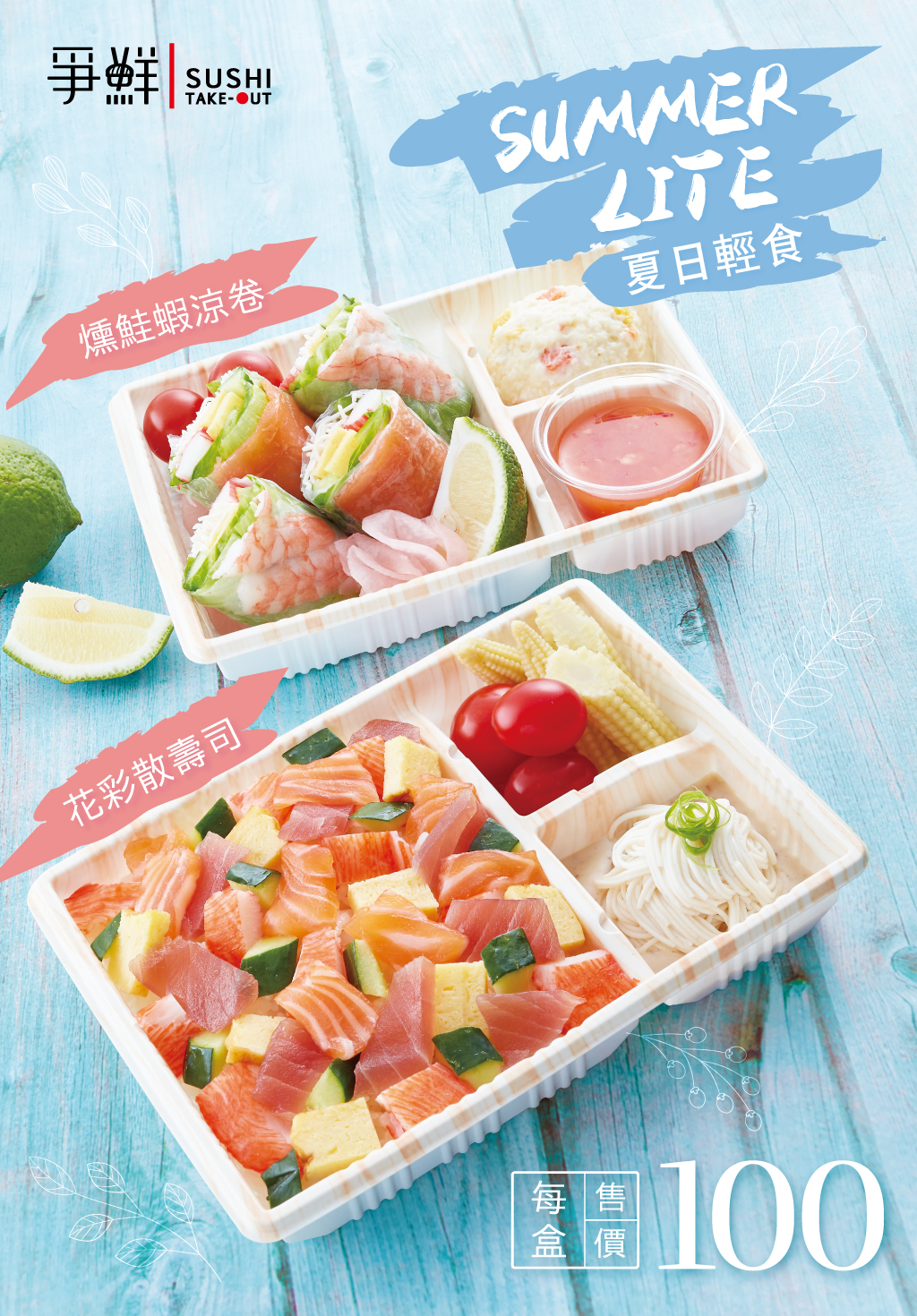 ▼這次推出的「Summer Lite夏日輕食」外帶便當有兩款,分別是「燻鮭蝦涼卷」和「花彩散壽司」。這兩款便當口感清淡非常適合夏天,而且鮭魚、鮪魚等食材給運動愛好者提供優質蛋白質與魚油。