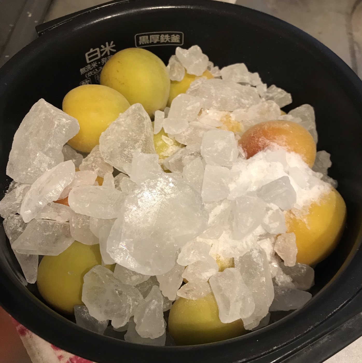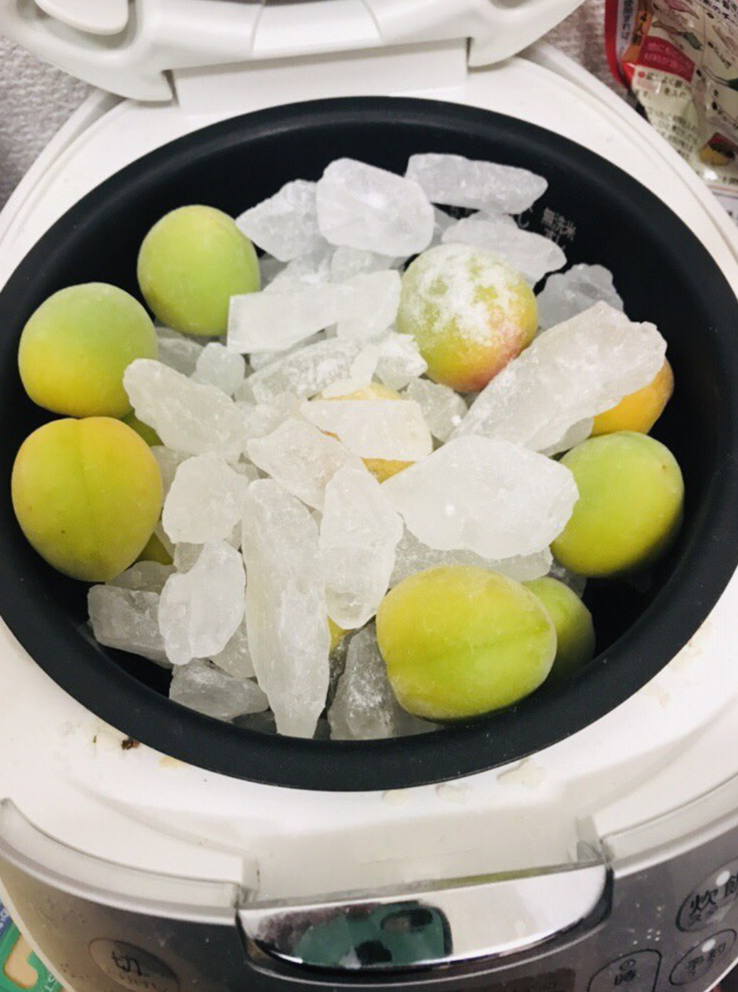 首先準備電鍋一個、冰糖1公斤、青梅1公斤(食材部分可依照需求調整)
