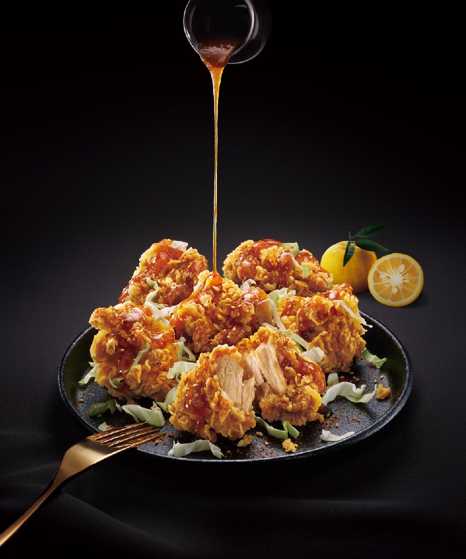 ▼此外,「柚香無骨大口脆雞」嚴選手工厚切的多汁無骨雞腿肉,再以多種秘藏香料醃製入味,口感豐富、增添不同層次的美味,也讓人大啖脆雞美味時無需剔骨,享受大口爽吃的快感!