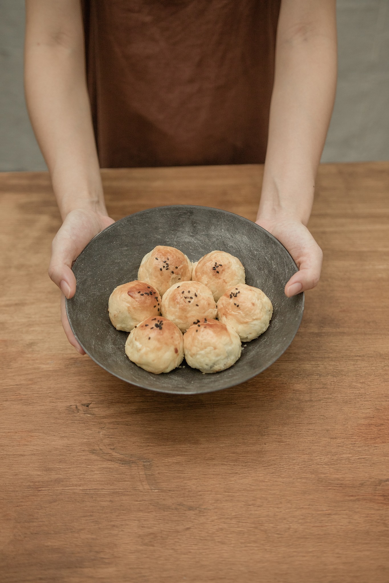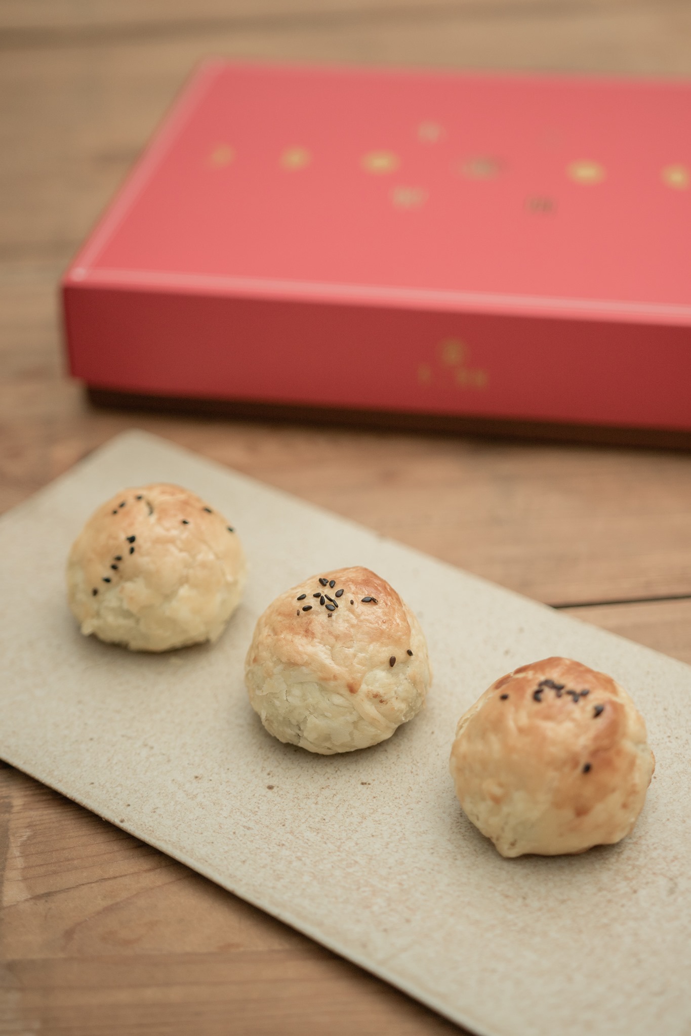 ▼金黃酥香的外皮包裹著綿密紅豆沙,與正中心的鹹香蛋黃形成絕妙搭配,滋味甜鹹交錯,口感層次豐富,真的超好吃~