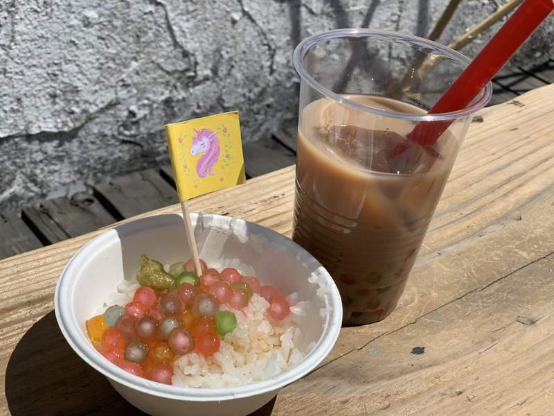 ▼6.珍珠粉圓和芥末醬油淋在米飯上,顏值超高,而且據說味道也超棒。