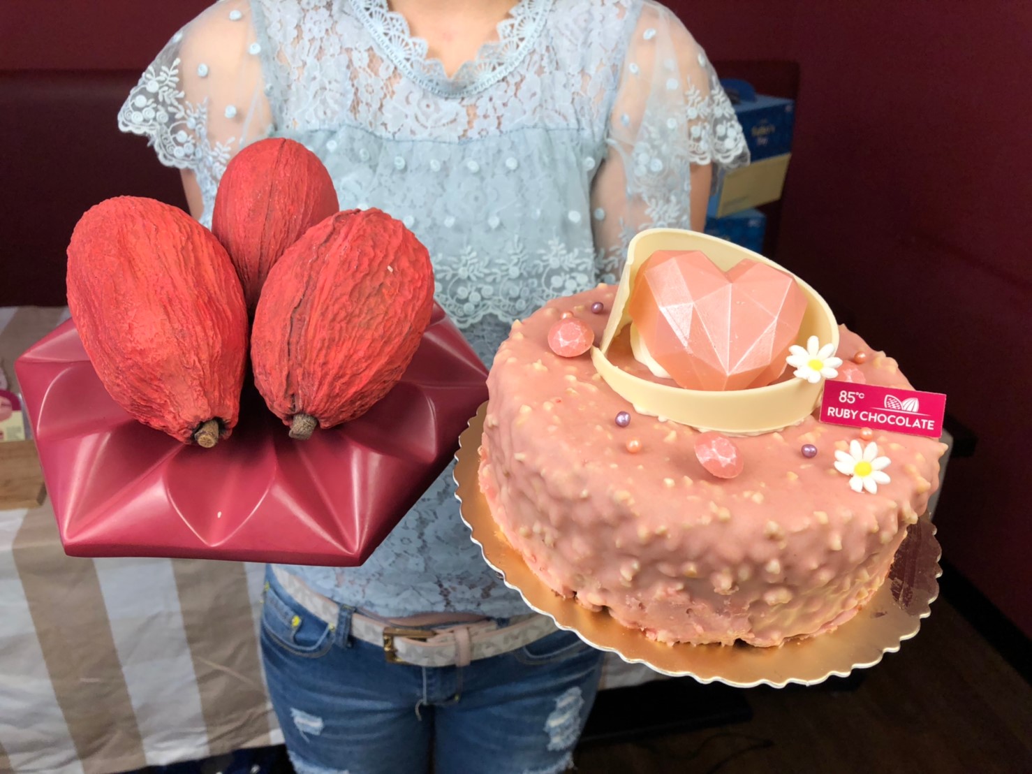 ▼粉紅巧克力是運用粉紅可可豆製成,今年才剛引進台灣。粉紅可可豆本身帶有清甜莓果香氣,製成巧克力後自然而然地形成滑順美麗的粉紅色澤,並帶有淡淡的果香,絕無添加香料、色素。
