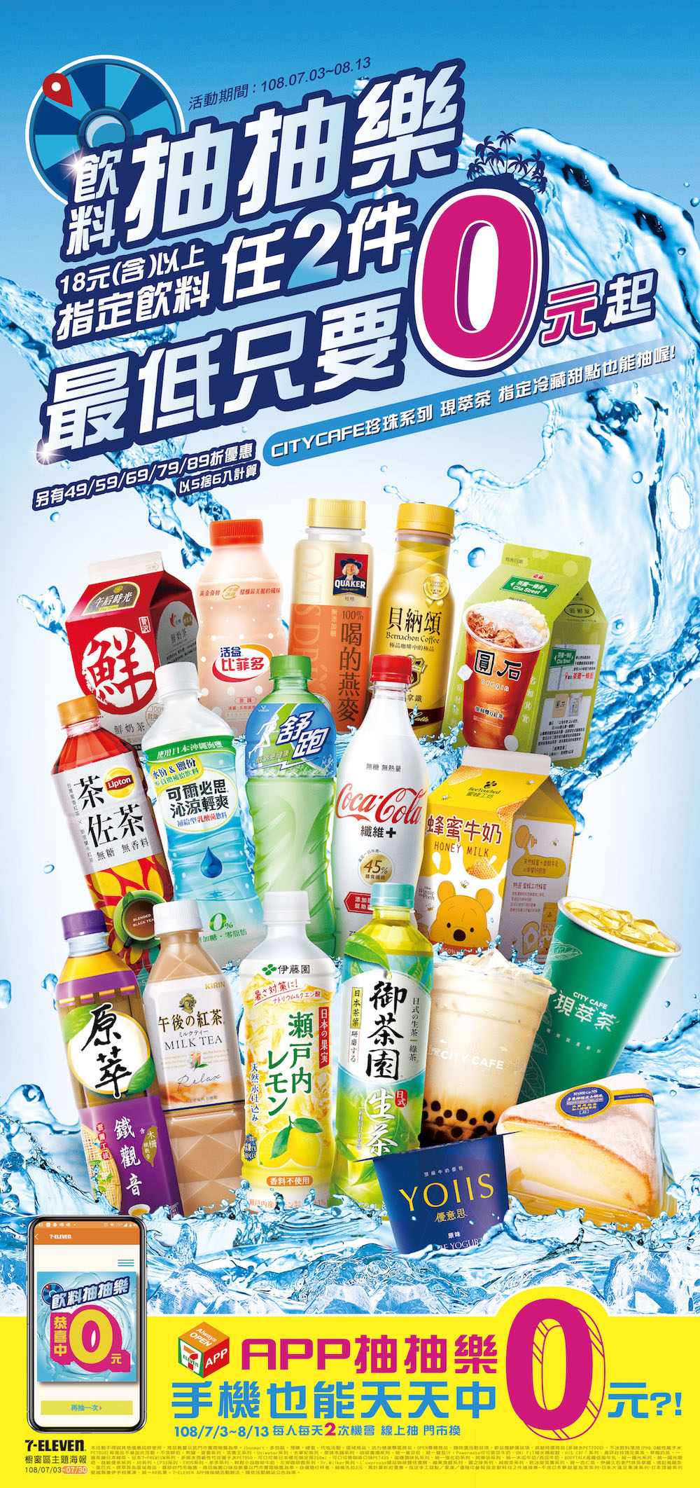 2件最低0元!小七「飲料抽抽樂」手機也能抽 加價送卡娜赫拉小機車❤