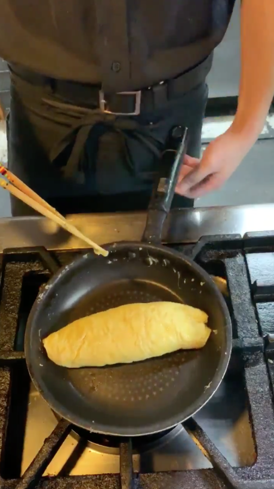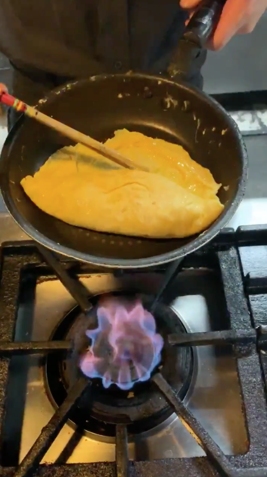 ▼接著就是做翻蛋的動作,一下就變成完整的歐姆蛋了!