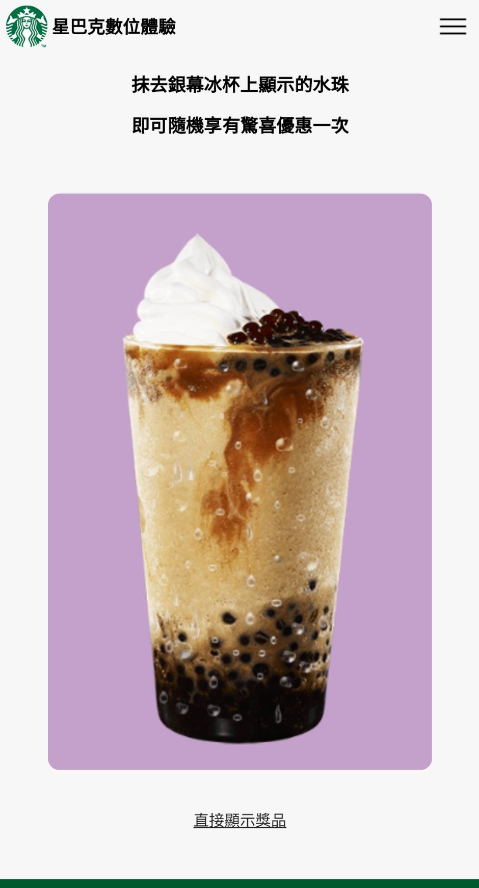 ▼星巴克推出「Summer on ice 沁涼夏日數位活動」,從即日起至7/21,只要進入星巴克活動頁面,參與互動式遊戲抹去飲料杯上的水滴,就能獲得不同優惠。