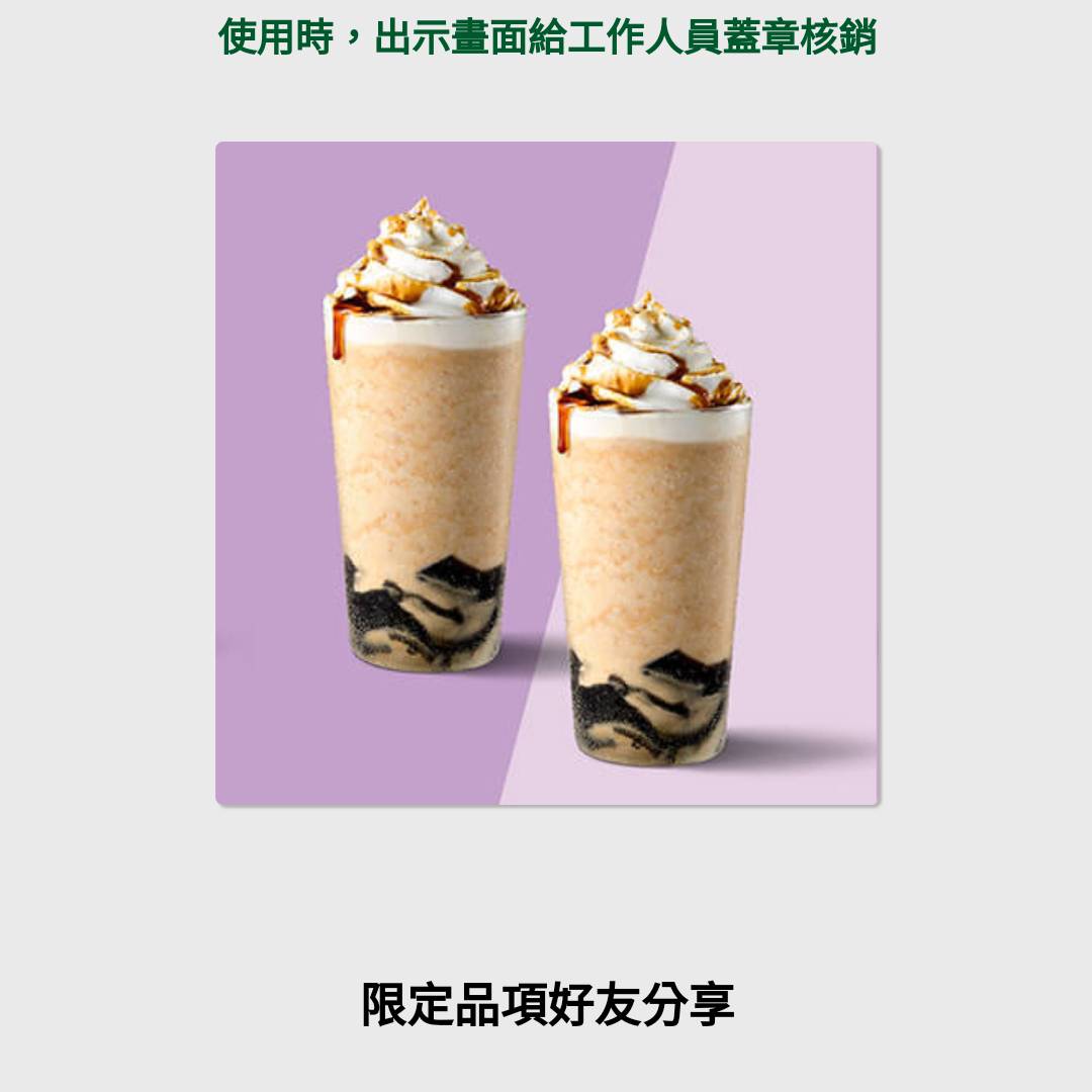 活動:參與星巴克線上數位活動,可抽不同系列飲品「好友分享」買一送一優惠。