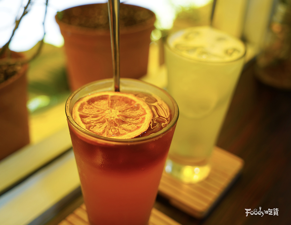 ▼不只餐點用心,飲料更是下足心力製作!老闆大推「新鮮水果冰茶」,選用當季水果,自己熬煮的水果醬調製而成,飲料上面放上一片自家烘烤的果乾橙片,不止營養成分高,顏值也兼顧到了!