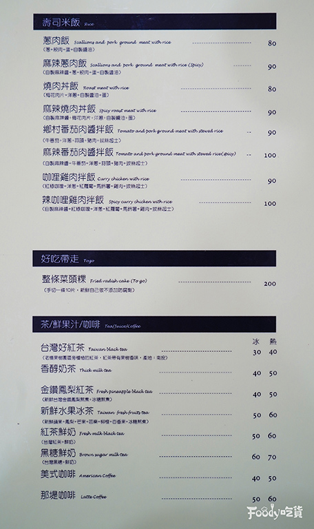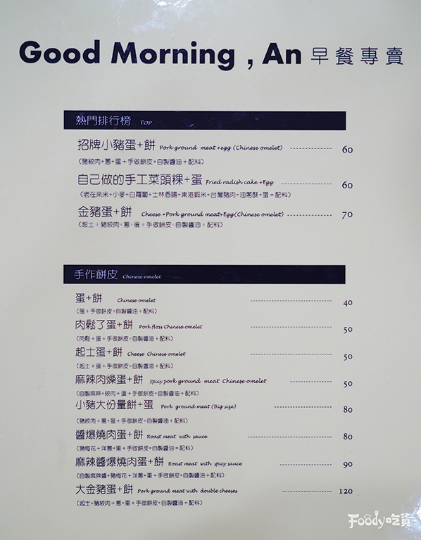 ▼看到菜單就會發現,餐點都是以「中式料理」為主,不像其他間早午餐大多是漢堡、吐司、拼盤等等,老闆最大的用意就是想呈現出台灣人最熟悉的味道,不僅傳承老闆阿嬤的堅持手作精神,更改良了用料、製作過程,讓店內的所有餐點都能以最完美的樣子給顧客吃!