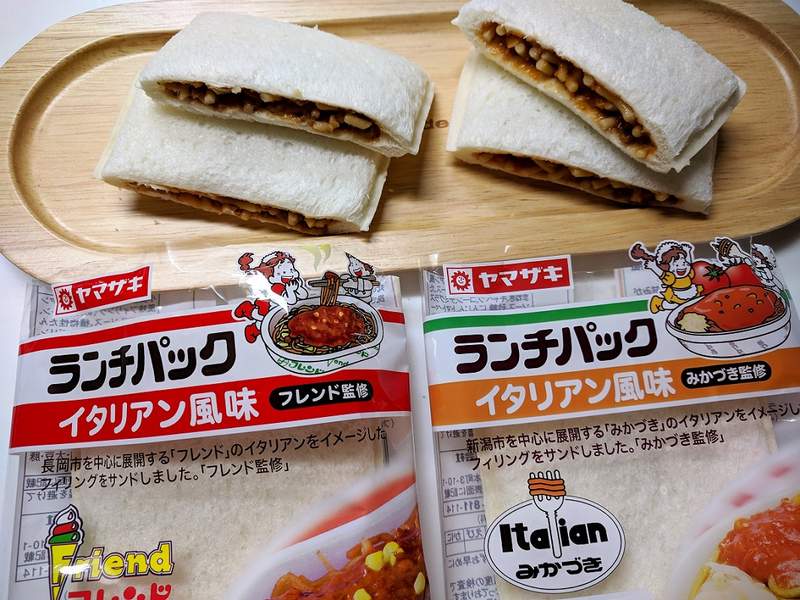 ▼在山梨、長野、新潟縣限定販賣的兩種義大利麵風味夾心吐司,成為了網友們討論的重點。第一種是「以長岡市為中心的連鎖店,Friend所推出的義大利麵」。