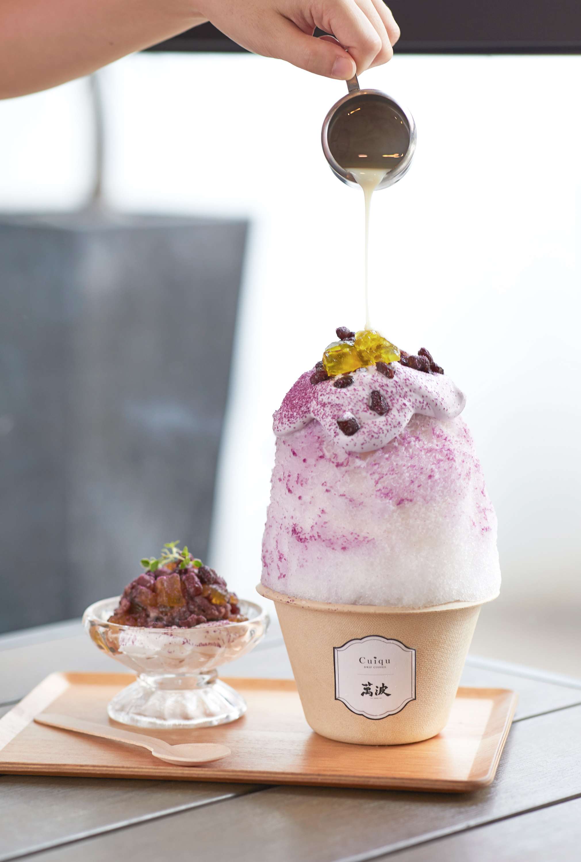 ▼「勾扎咪紅豆粉粿」(180元):細緻鵝絨刨冰上覆蓋香甜綿密奶霜,頂部綴飾蜜紅豆及滑嫩Q彈的粉粿,淋上台灣小農煉乳,一旁的紅豆粉粿及煉乳可依喜好添加。濃厚古早味與日式冰品的創意結合,香甜綿密奶霜蓋在刨冰上,讓人欲罷不能的滋味~
