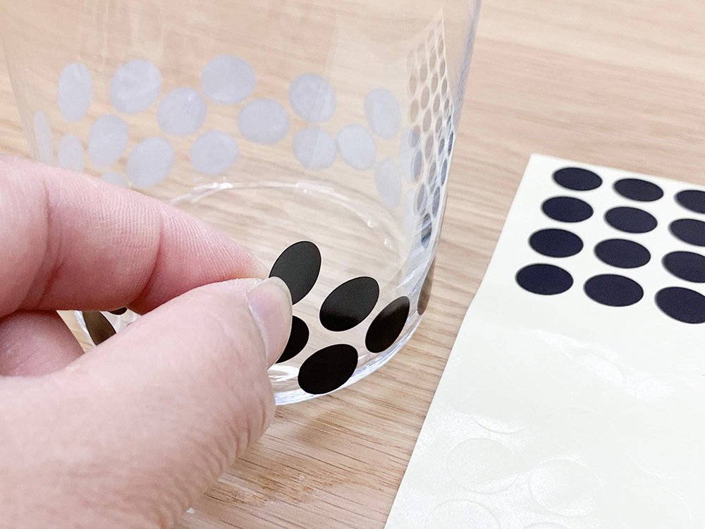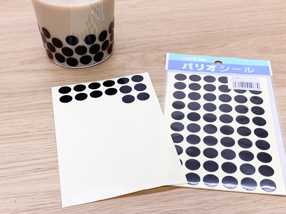 ▼在玻璃杯外貼一些黑色圓形貼紙,減肥專用珍奶杯就做好了。