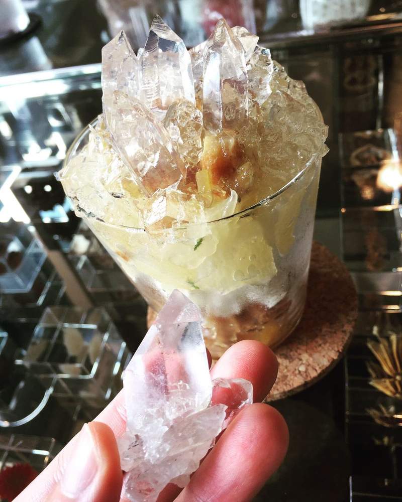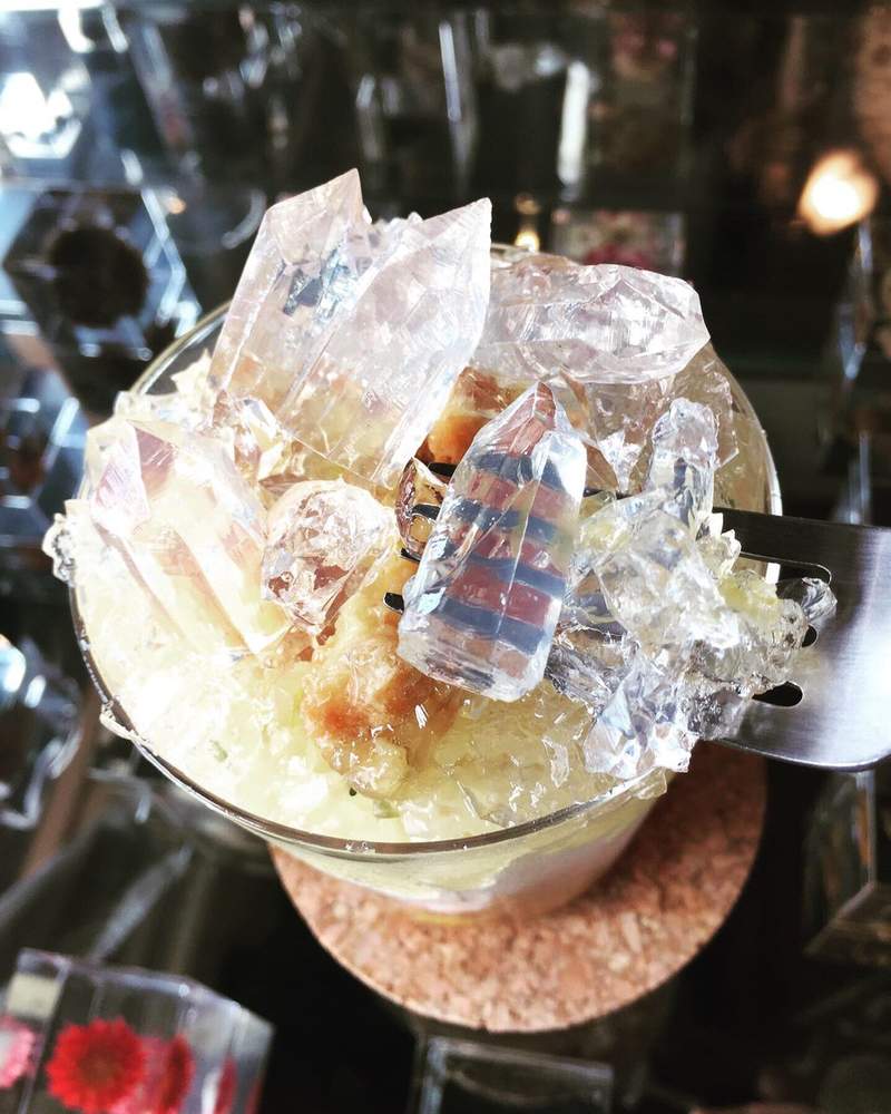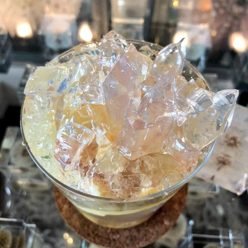 ▼而如今這款「水晶聖代」,是店家在6月為了新品展覽特別推出的礦物甜點。