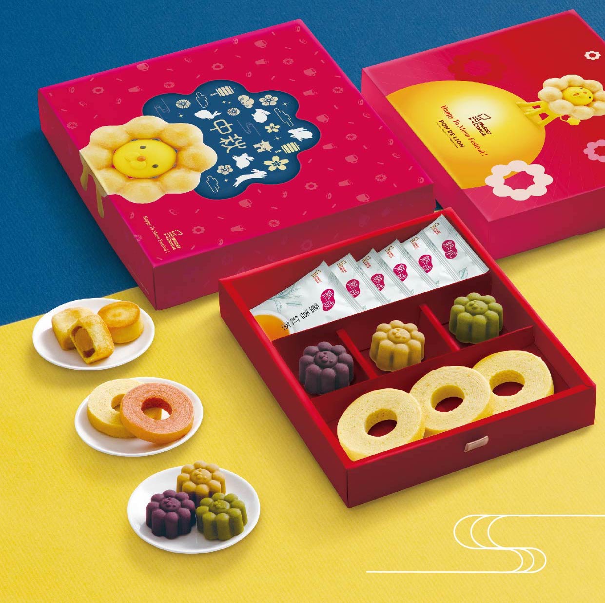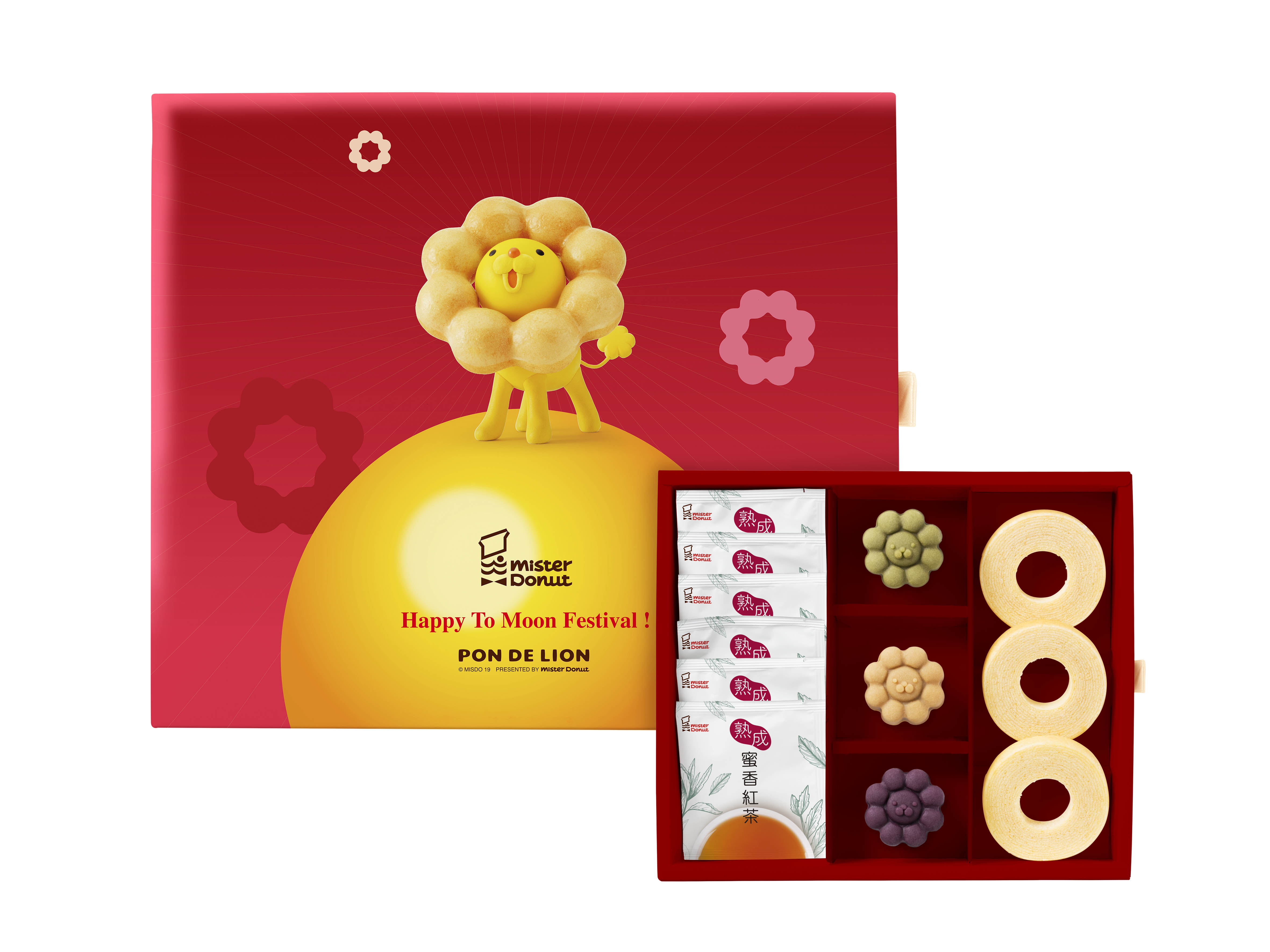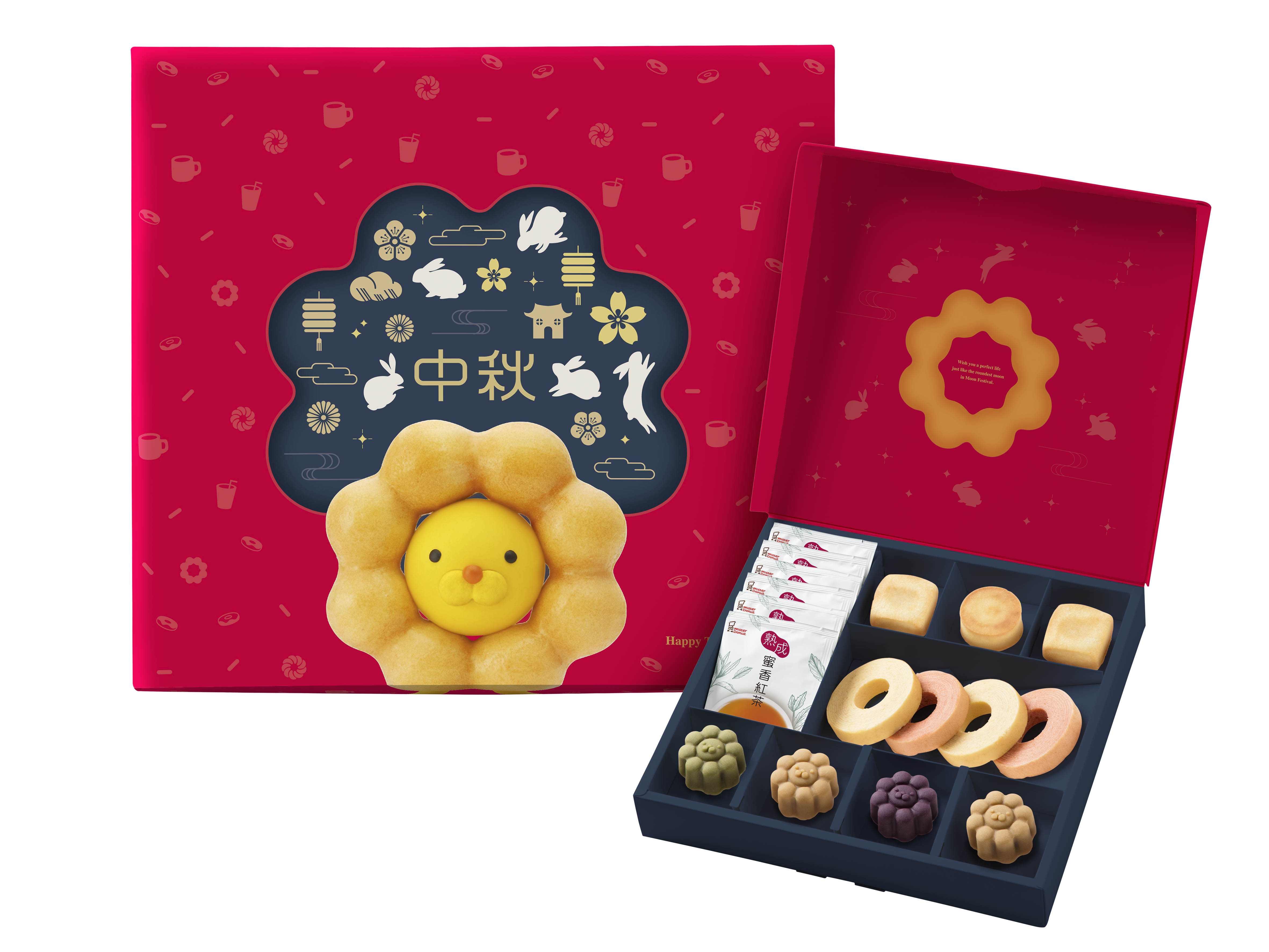 ▼Mister Donut「小幸福禮盒」(470元)以獨特「抽屜式」設計,非常可愛;拉開來就能看到以波堤獅造型製作的和菓子月餅,驚喜又吸睛。