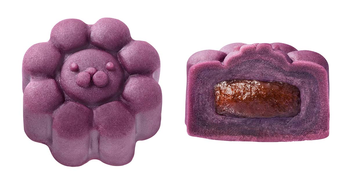 ▼2.「紫薯黑糖麻糬」:紫薯、黑糖兩大元素構成,瀰漫著濃濃的沖繩風情。以台灣產紫薯地瓜製成豆沙餡,結合台灣在地食材,創造出日系風格的桃山月餅。
