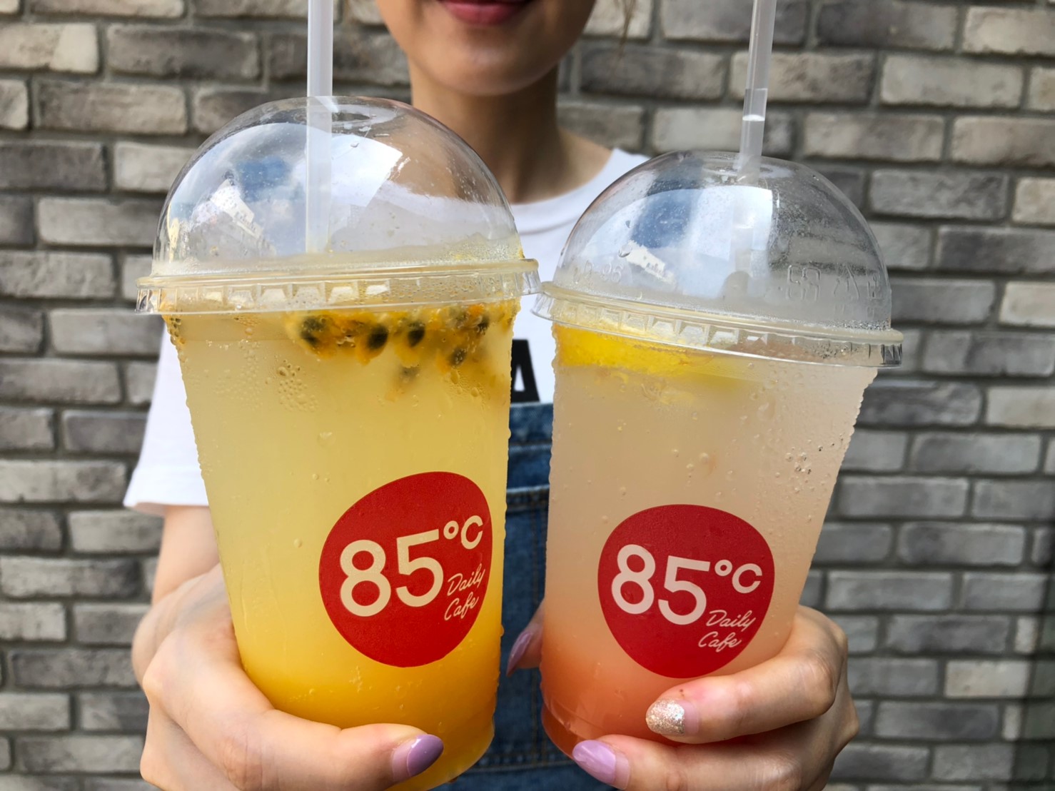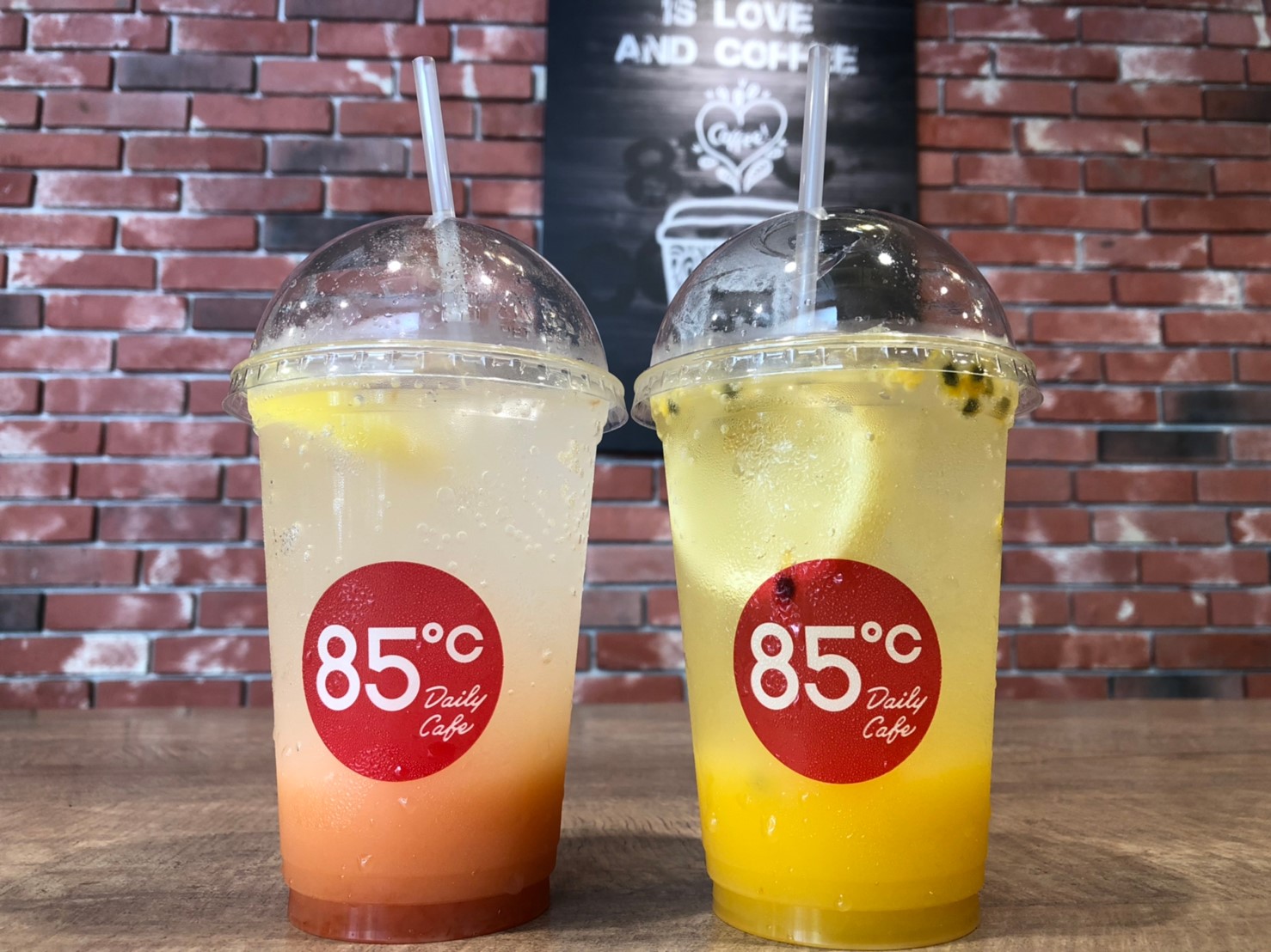 ▼85℃今年推出的水果氣泡飲,使用清爽的優格乳酸飲再各別加入葡萄柚和百香果汁,調和出最佳酸甜風味,搭配現打氣泡水,橘黃色果汁漸層,除了賞心悅目,喝起來酸酸甜甜,又有濃濃的水果香,就像水果汽水超涮嘴!