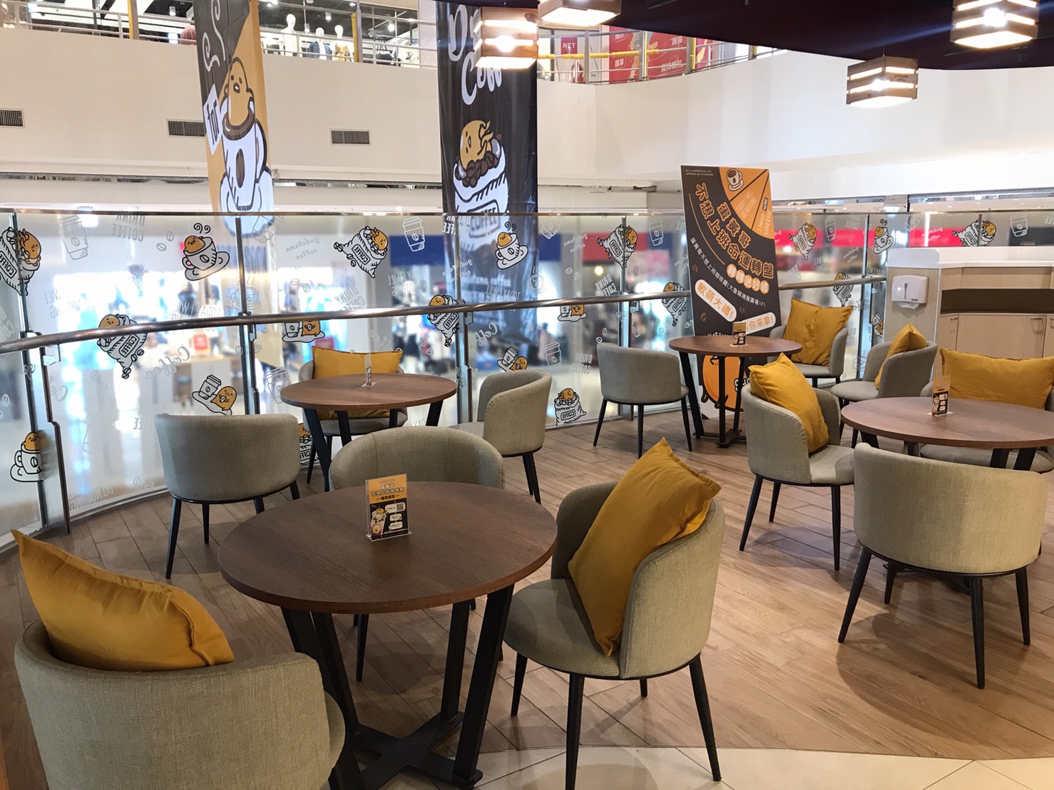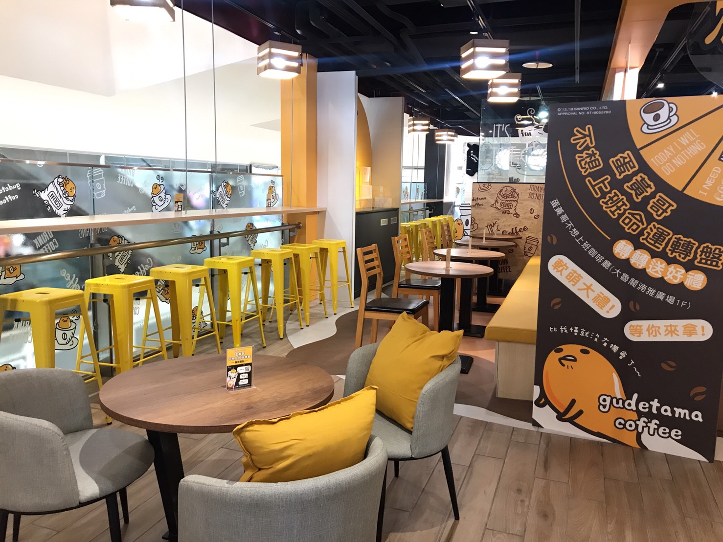 ▼店內空間寬敞舒適,以蛋黃哥的鮮黃色和木紋為主調,甚至還有梳化區,來到這裡的民眾可以將自己裝扮成蛋黃哥,一起來耍懶享受一下午~~