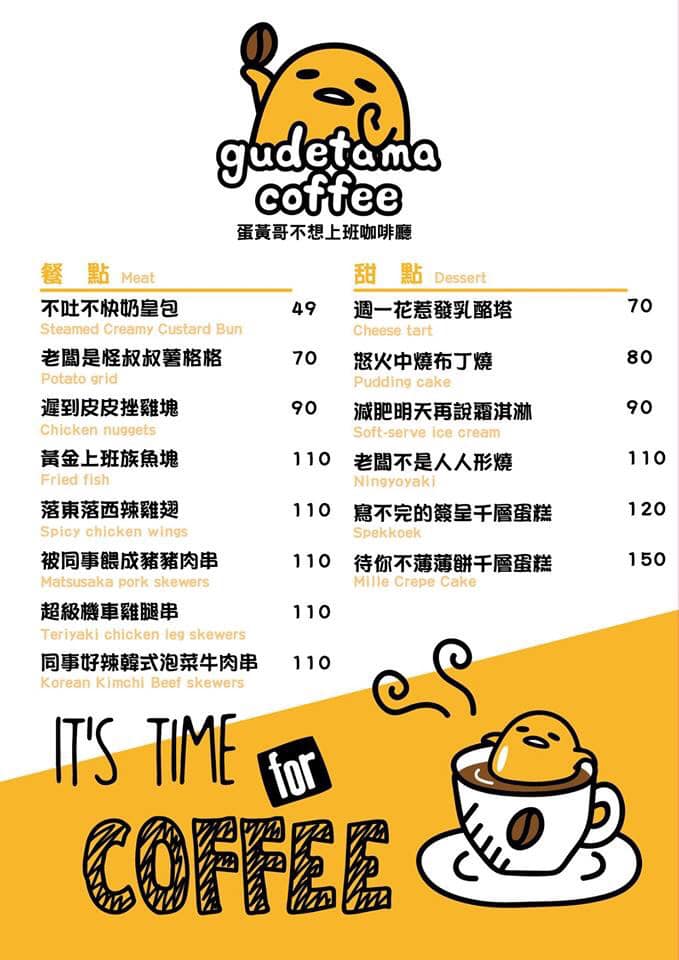 ▼餐點也是結合蛋黃哥一貫的慵懶風格,在每一個餐點上都有「微厭世」名稱。