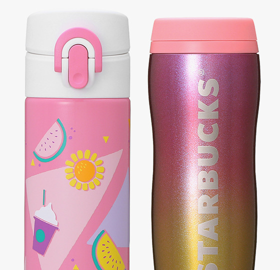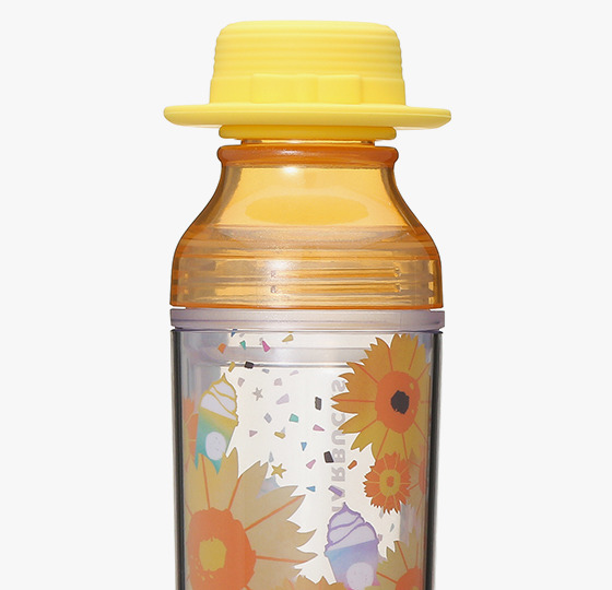 ▼「夏日杯」:放進西瓜、向日葵、星冰樂等夏日經典元素,以鮮豔大膽的配色帶來滿滿的夏日感。另外還有以「草帽」為原型設計而成的草帽瓶蓋杯,實在太呆萌惹。