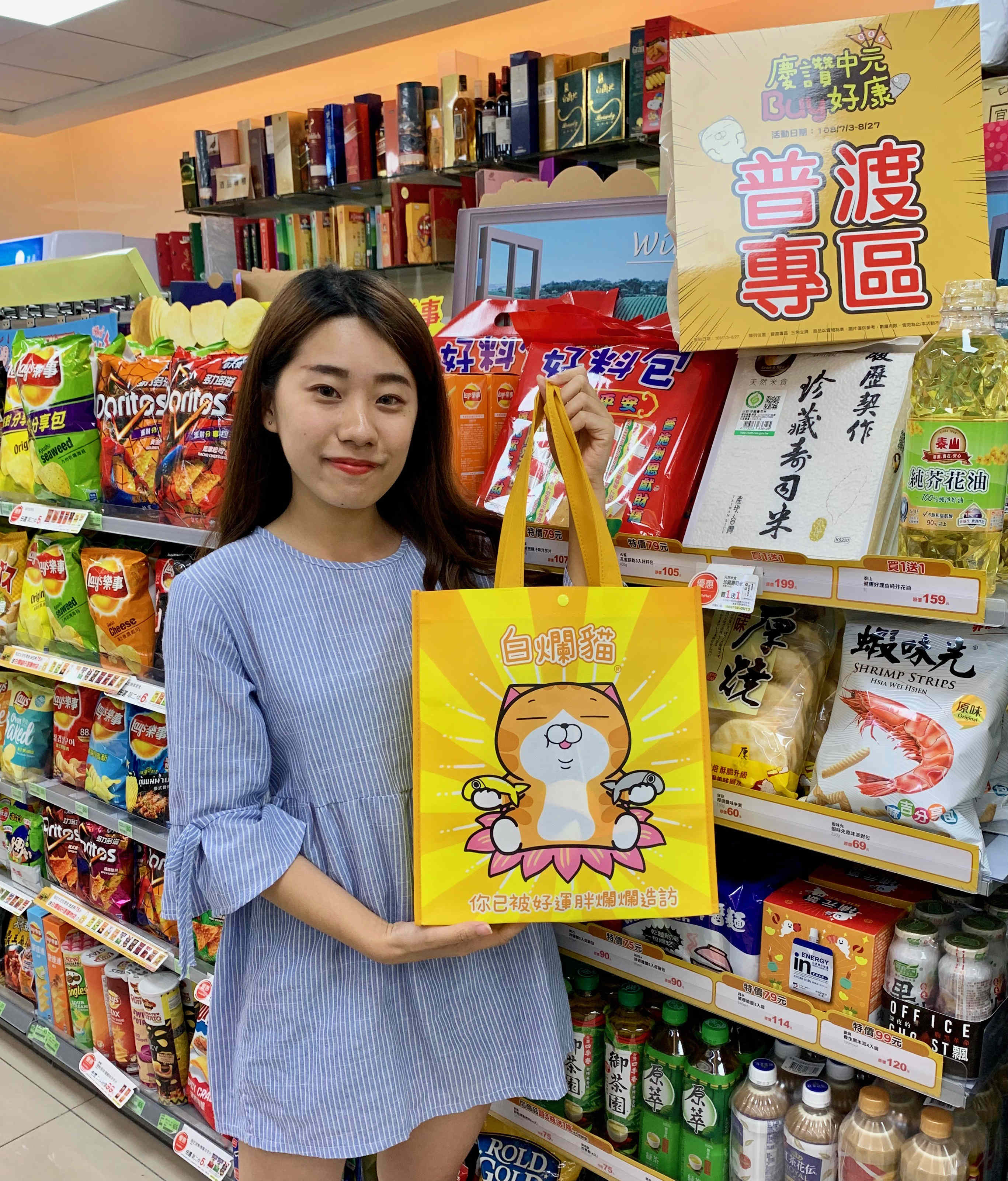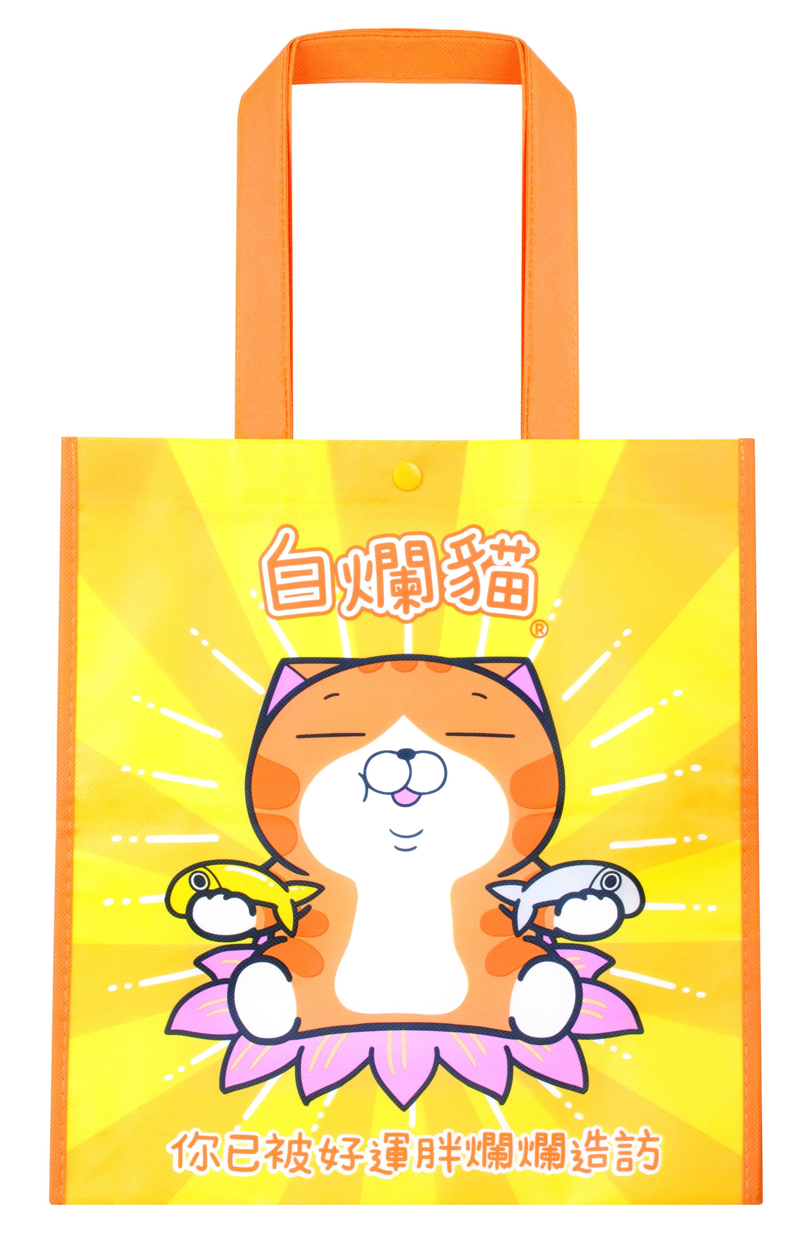 ▼即日起至8/27購買「好運組合購」中任一組合,或於實體店鋪購買指定25-45元零食任五款(可打75折),就送全台限量6萬個「白爛貓好運購物袋」!