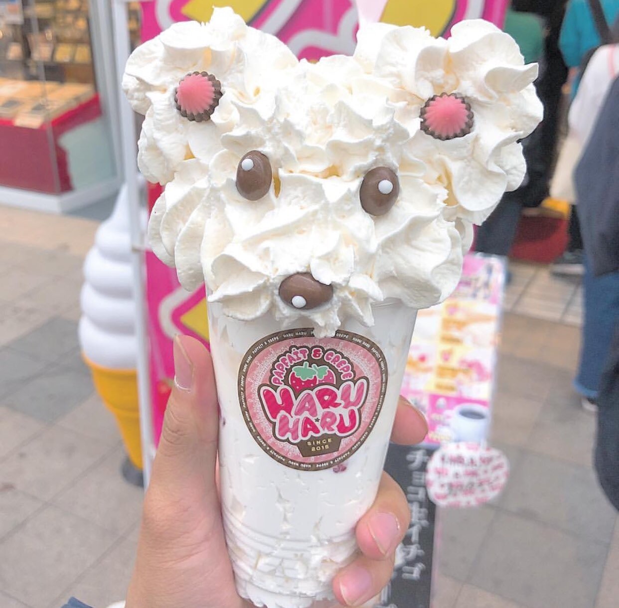 ▼HARU HARU另外一款人氣商品,則是常被誤認為狗狗的鮮奶油聖代杯「熊熊盛宴(クマクマパラダイス)」,除了可愛以外,一樣以大量鮮奶油為賣點。