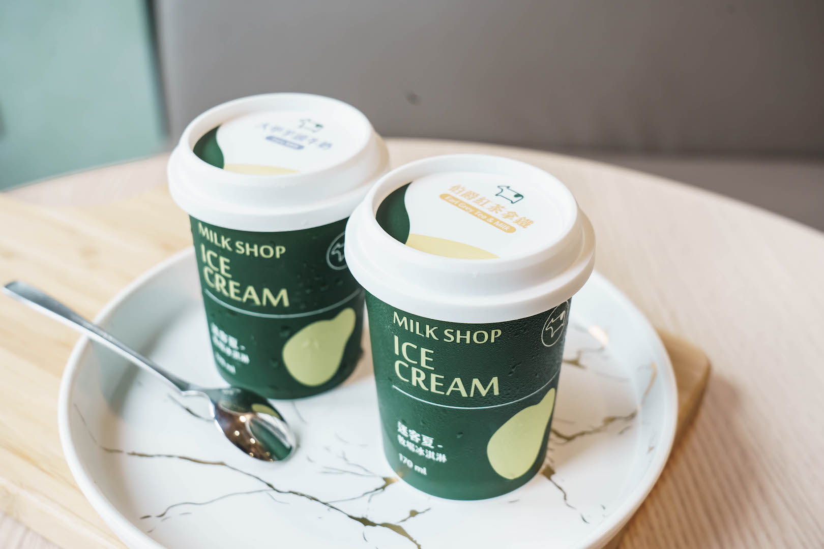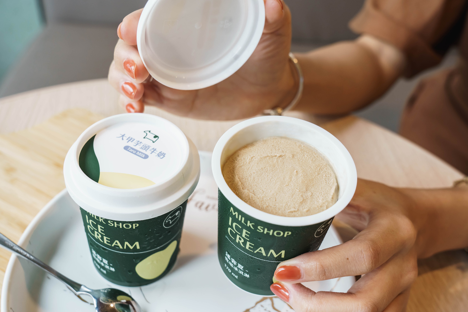 ▼迷客夏牧場冰淇淋共有兩種口味,「大甲芋頭牛奶」(70元)嚴選大甲芋頭搭配牧場鮮乳,每一口都能吃到芋頭顆粒,用真材實料來滿足芋頭控;「伯爵紅茶拿鐵」(65元)以厚實回甘茶韻、濃醇奶香融合成滑順口感,甜而不膩。