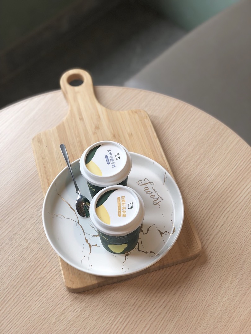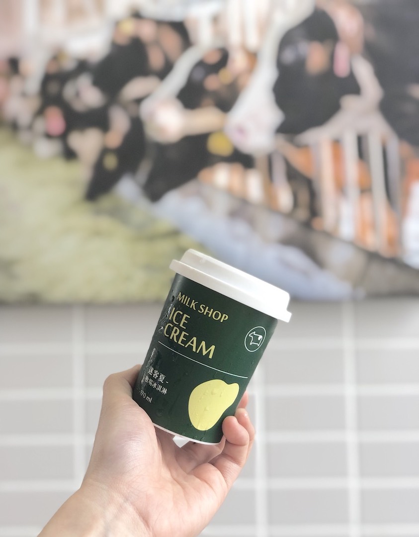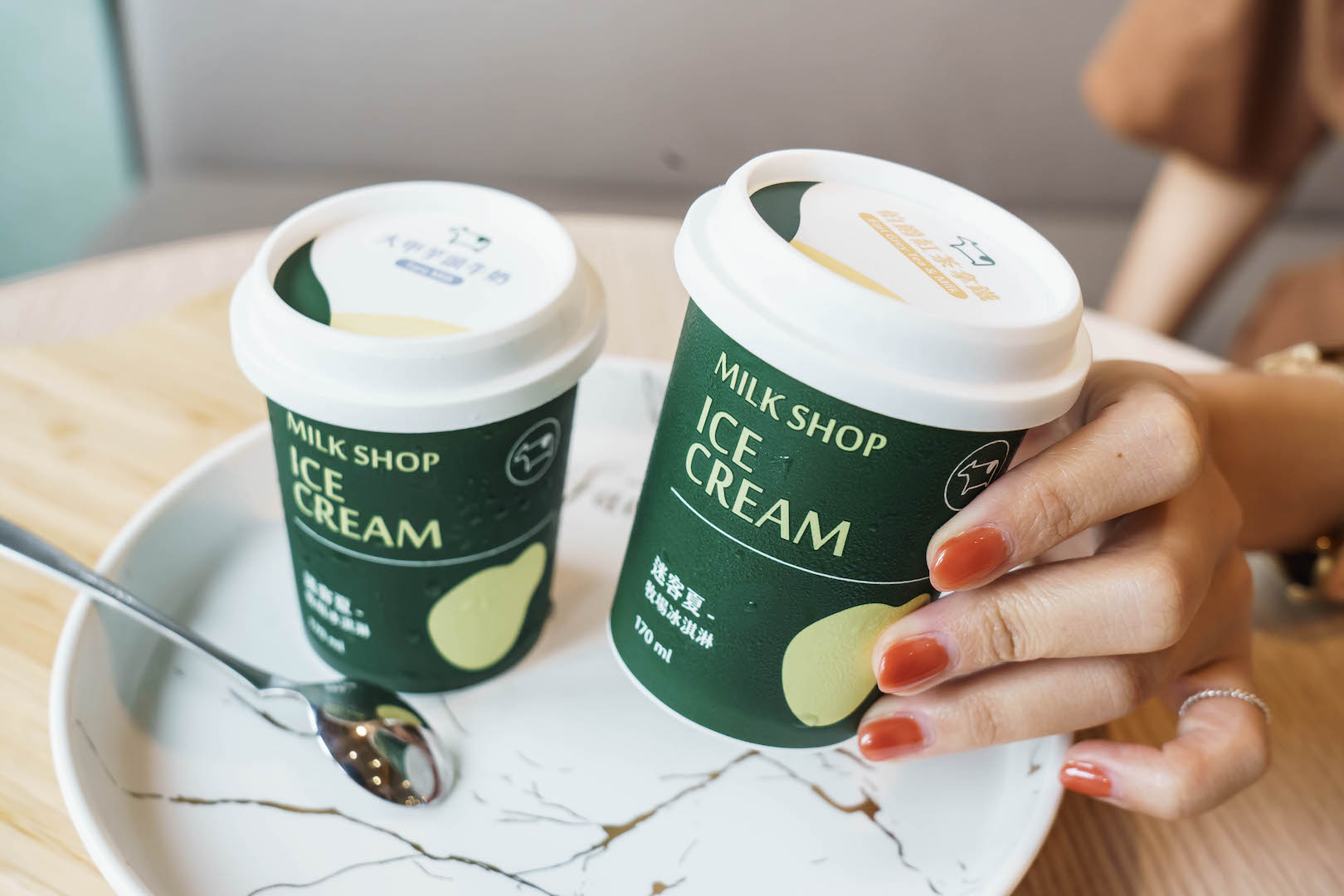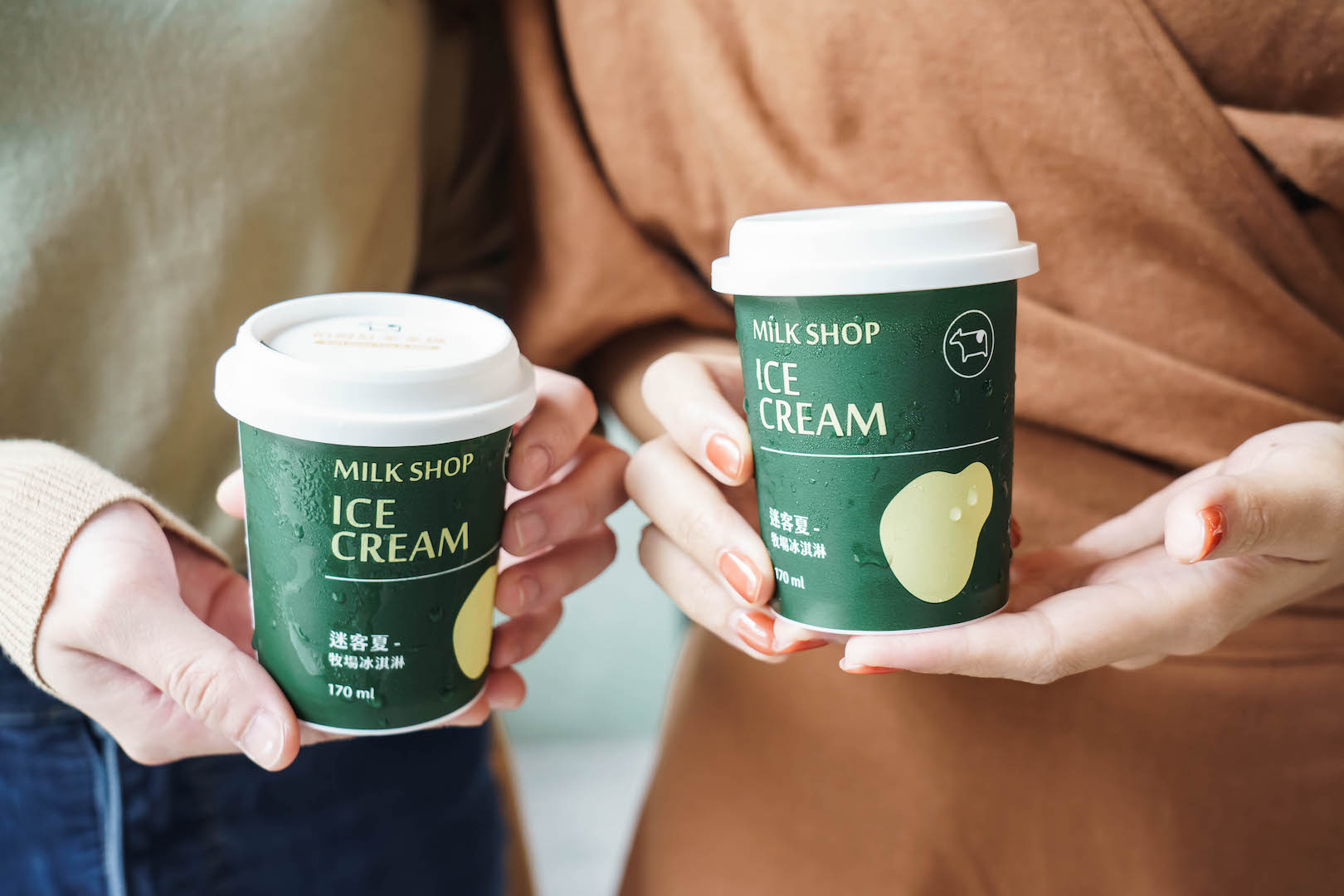 ▼這次的牧場冰淇淋以迷客夏的「牧場綠」包裝為主軸設計,墨綠杯身加上乳白上蓋,就像是手搖杯的縮小版,精巧可愛。兩款牧場冰淇淋在不同門市分別上市,每間門市限定一種口味,想兩種都吃到的可以到官網查詢門市資訊~