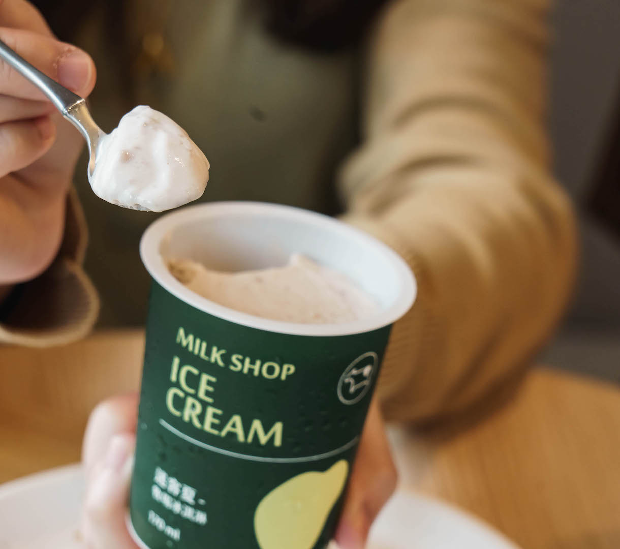 ▼迷客夏在各門市推出「牧場冰淇淋」,與店裡飲料同樣使用迷客夏品牌自產「綠光鮮奶」,一口吃下去,奶香在嘴裡縈繞不絕,絲滑柔順的口感讓人欲罷不能;而相較於過去推出的冰淇淋,這次份量更大,而且現場點餐就能馬上拿到,再也不用等預購!
