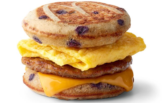 ▼香腸、雞蛋、藍莓起司 McGriddles 早餐三明治: