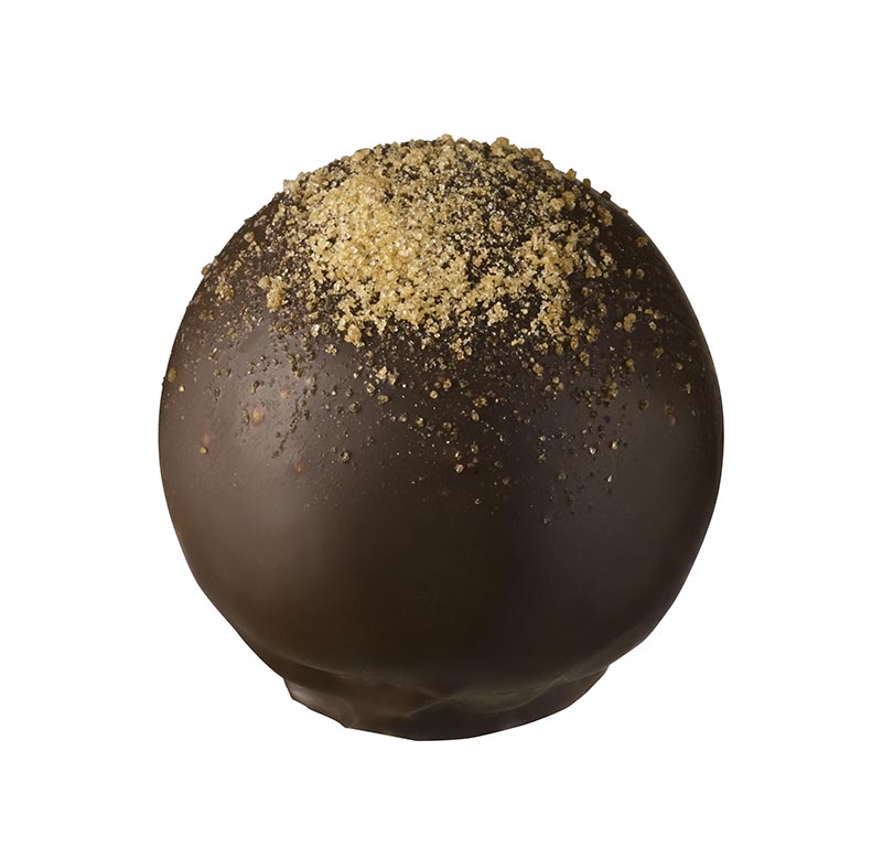 ▼「黑糖」細膩絲滑的黑糖巧克力醬配搭醇香的黑巧克力,外層上點綴著少許金黃色的黃糖。