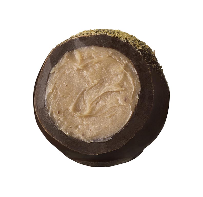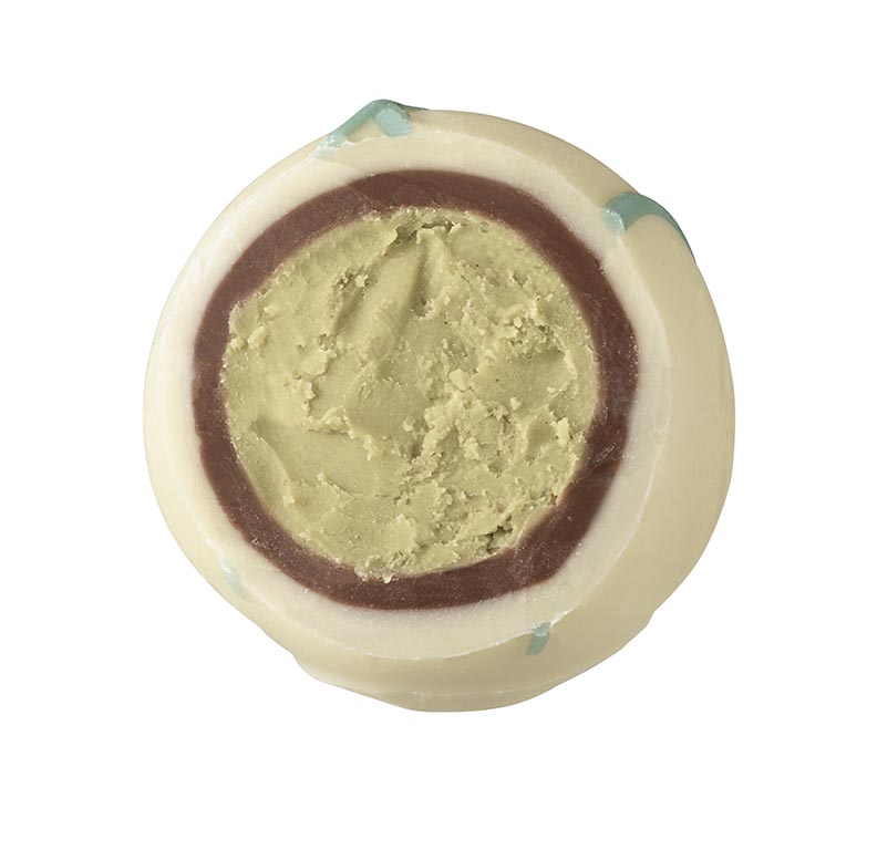 ▼「開心果」濃香絲滑的開心果仁蓉,被香甜的牛奶巧克力和白巧克力包裹著。