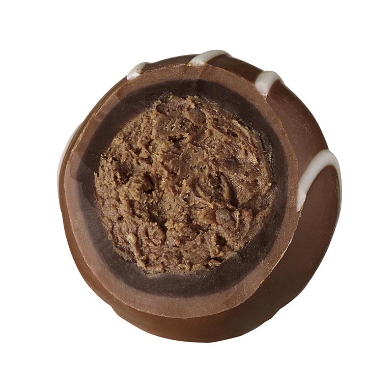 ▼「香脆杏仁」絲滑的牛奶巧克力融入香氣濃郁的果仁蓉,再被一縷縷白巧克力點綴。