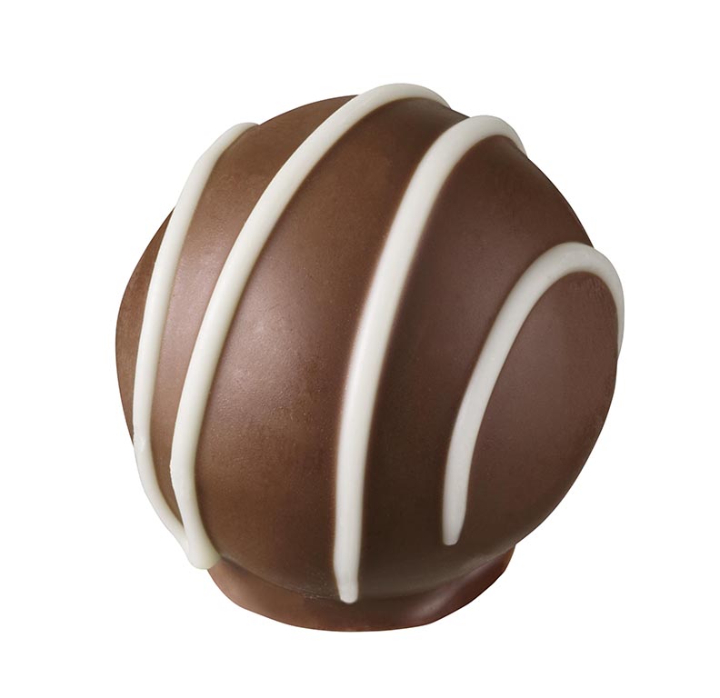 ▼「紅莓香橙」濃郁醇香的黑巧克力外層包裹著紅莓和香橙餡料。