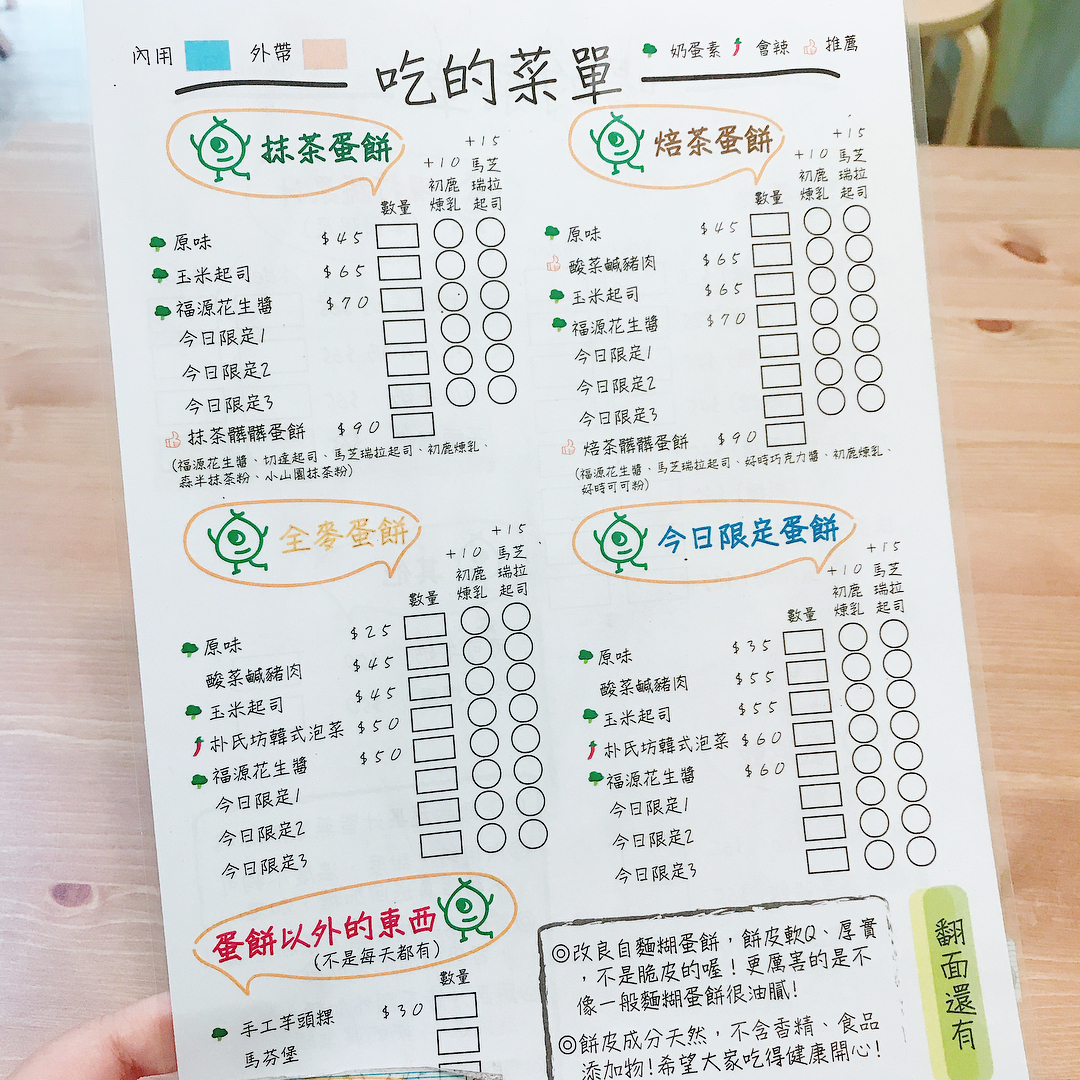 ▼除了抹茶蛋餅之外,還有其他口味也是人氣超高!像是「焙茶髒髒蛋餅」選用福源花生醬、馬芝瑞拉起司、好時巧克力醬、初鹿煉乳、好時可可粉。另外還有「玉米芋頭蛋餅」」、「火龍果蛋餅」每一款都超級特別,誰也不會想到這些時才可以跟蛋餅結為一體!