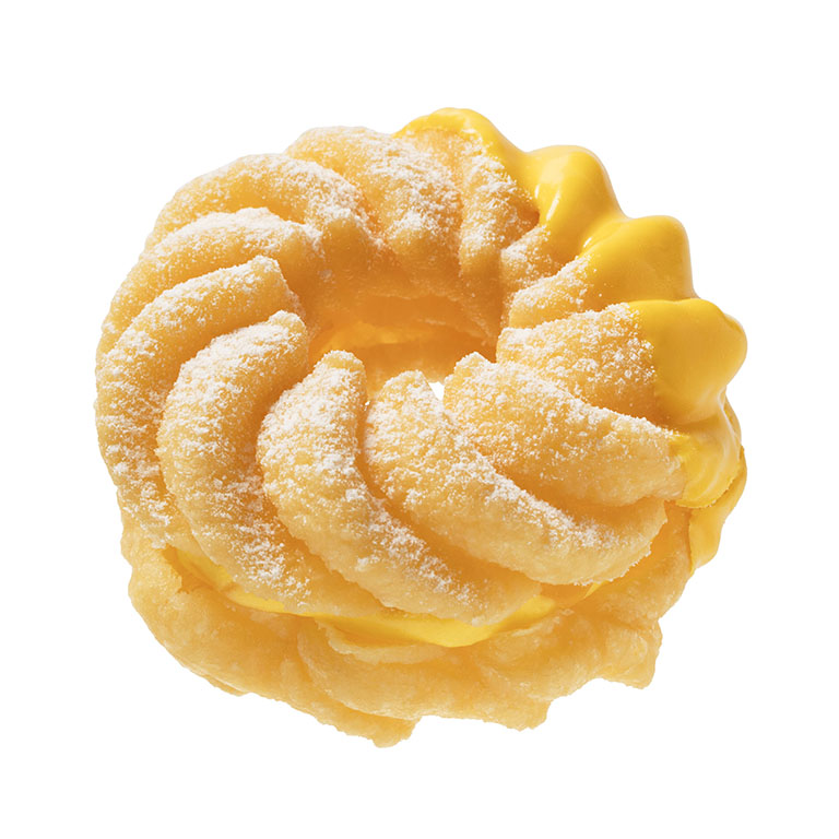 ▼「芒果黃金圈」(售價45元)經典甜甜圈外型,搭上台灣在地愛文芒果。蓬鬆細緻,吃得出芒果果乾。微酸輕甜,仲夏限定的滋味。這一刻,愛吧!