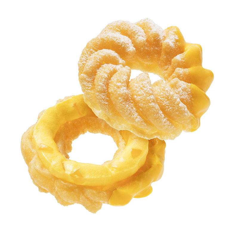 ▼「芒果椰果巧貝」(售價45元)鬆軟黃金圈體,填入特製的芒果卡士達醬。一口咬下,滿滿的幸福。在芒芒果海中與顆顆椰果相遇,酸甜不膩的多層次搭配。椰~這個很可以。7/30(二)~8/12(一)於全台238家7-ELEVEN店中店限量上市!