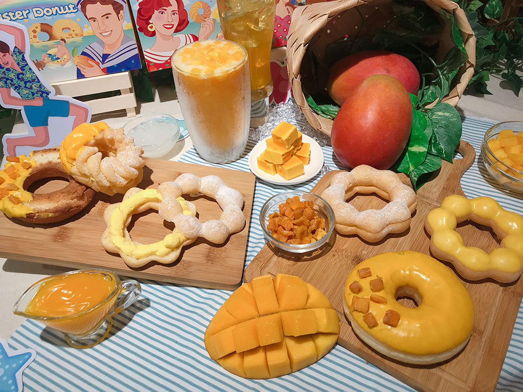 ▼本次Mister Donut共推出六款新商品,「芒果波堤」、「芒果椰果波堤」、「芒果椰果法蘭奇」、「芒果歐菲香」、「芒果黃金圈」、「芒果椰果巧貝」。
