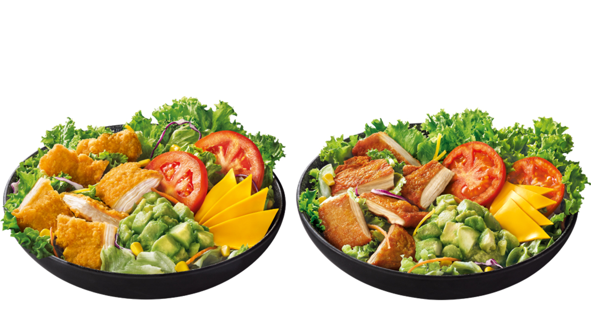 ▼此外,也有酪梨脆雞沙拉(左)、酪梨烤雞沙拉(右)系列,為喜愛輕食的消費者提供更多元的選擇,能充分品嚐酪梨不同的風情與美味!