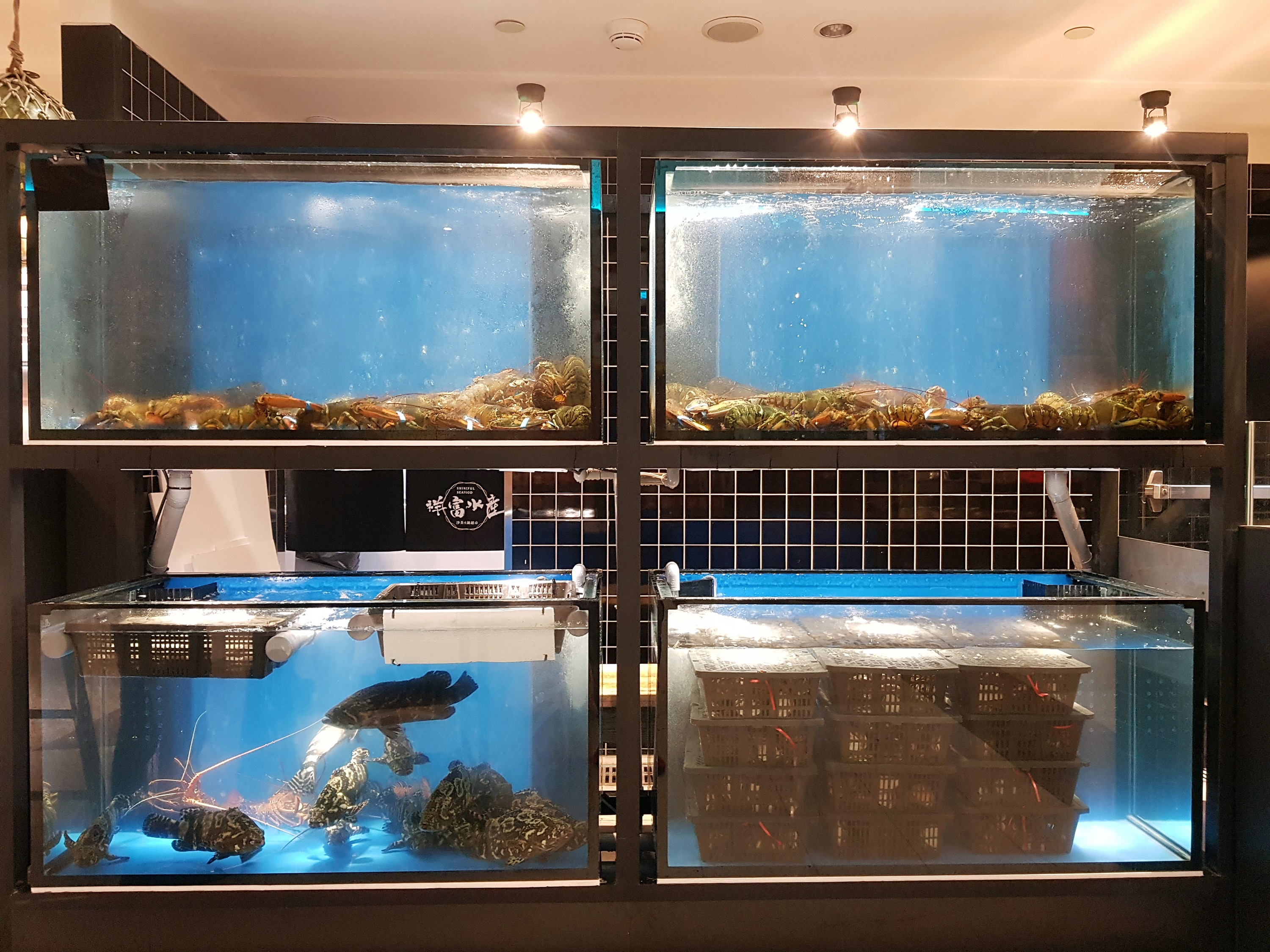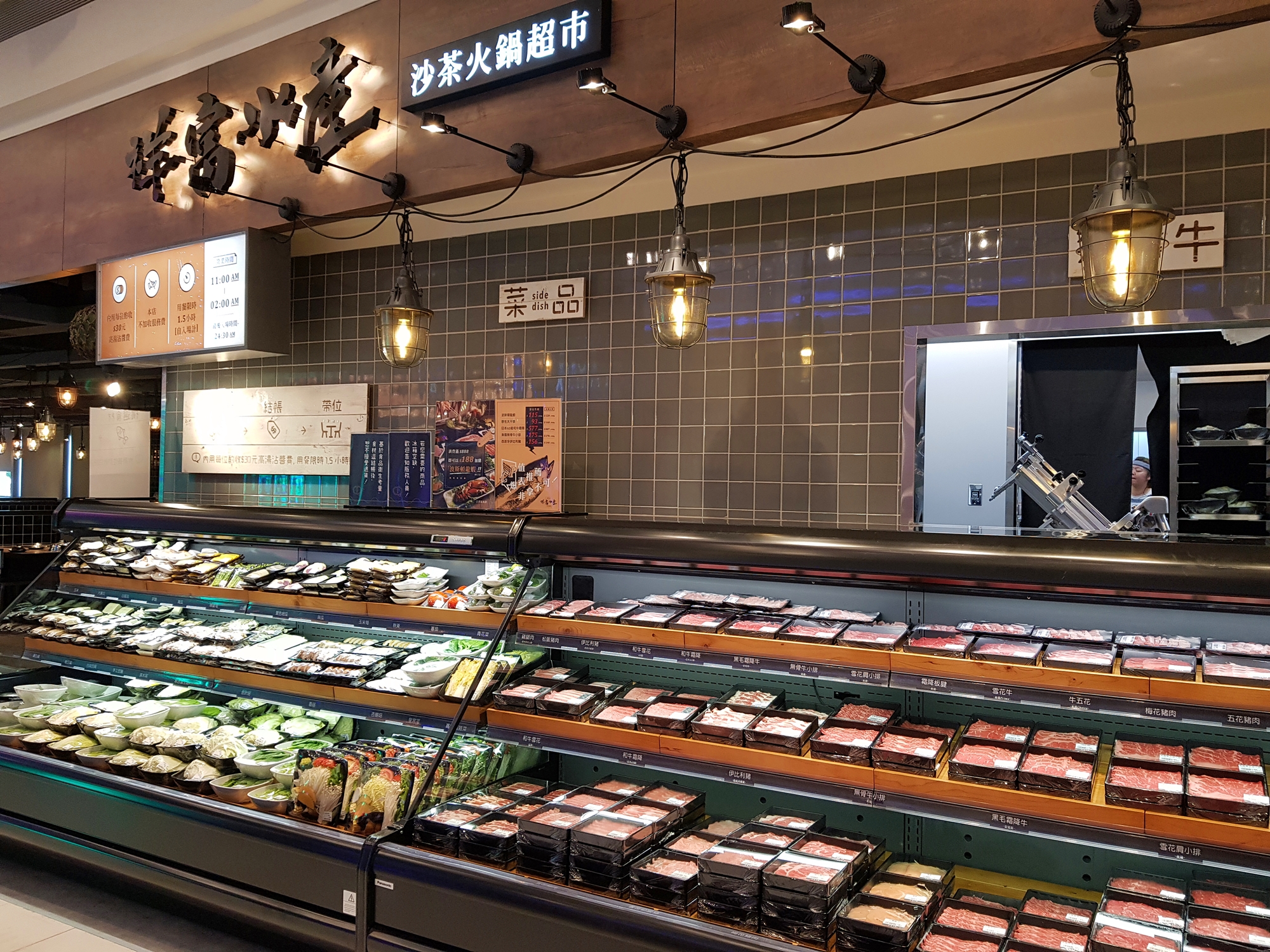 ▼祥富水產沙茶火鍋超市夢時代店,為全台第九號店,座席數有140席,特別的是二代店的設計為強調新鮮直送,因此店內也首度引進四座活海鮮展示櫃,包含龍蝦、龍虎斑、海戰車、黑盤鮑等活海鮮供現點現撈,再由專業廚師在開放式廚房直接分切、烹煮,讓消費者看的到所有的食材處理流程,安心地享用每一種選購的食材。