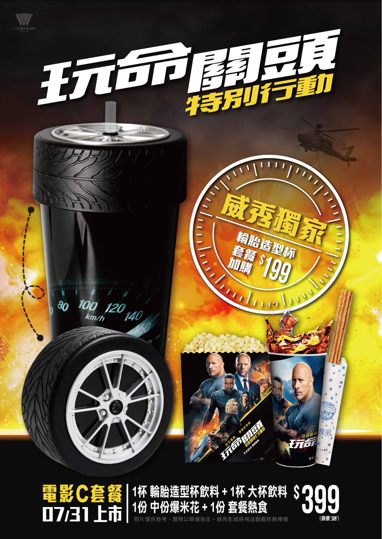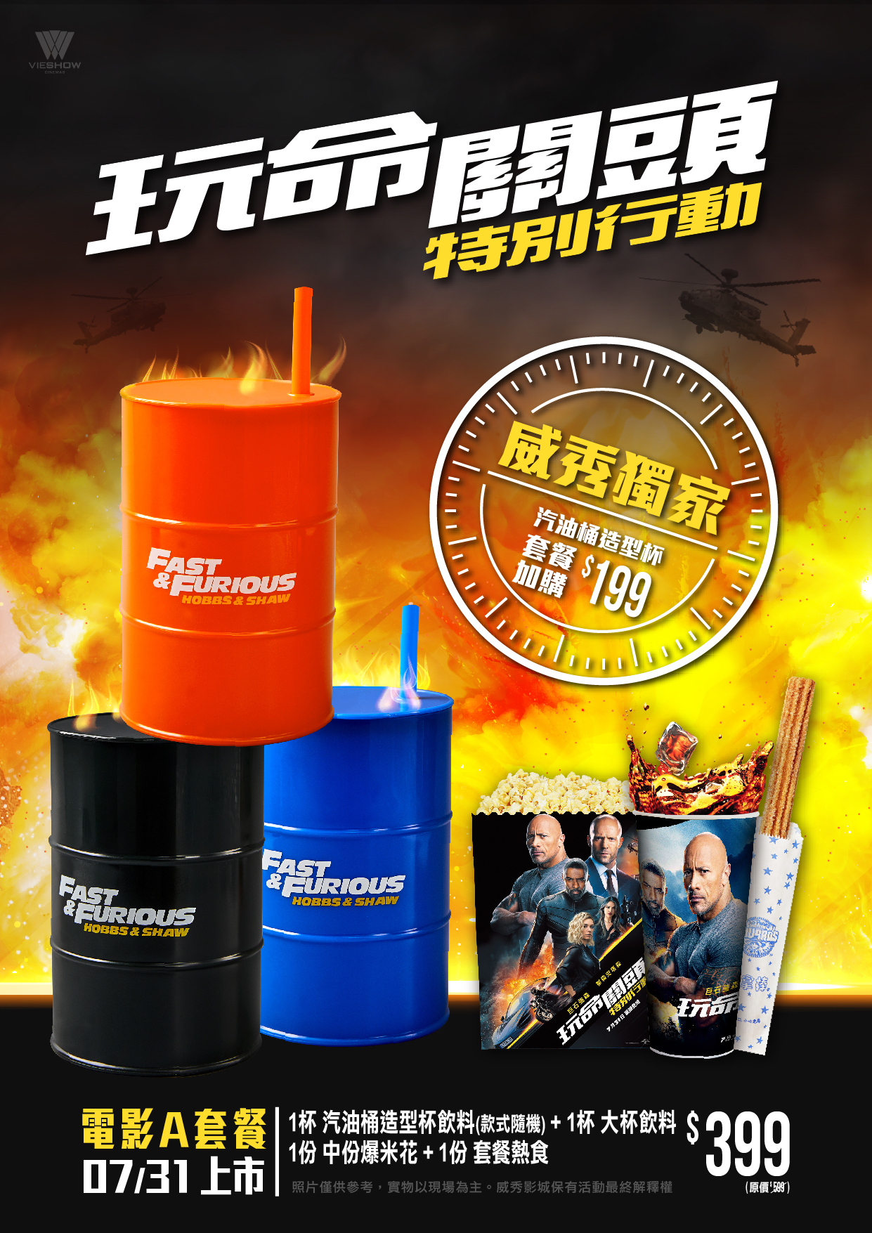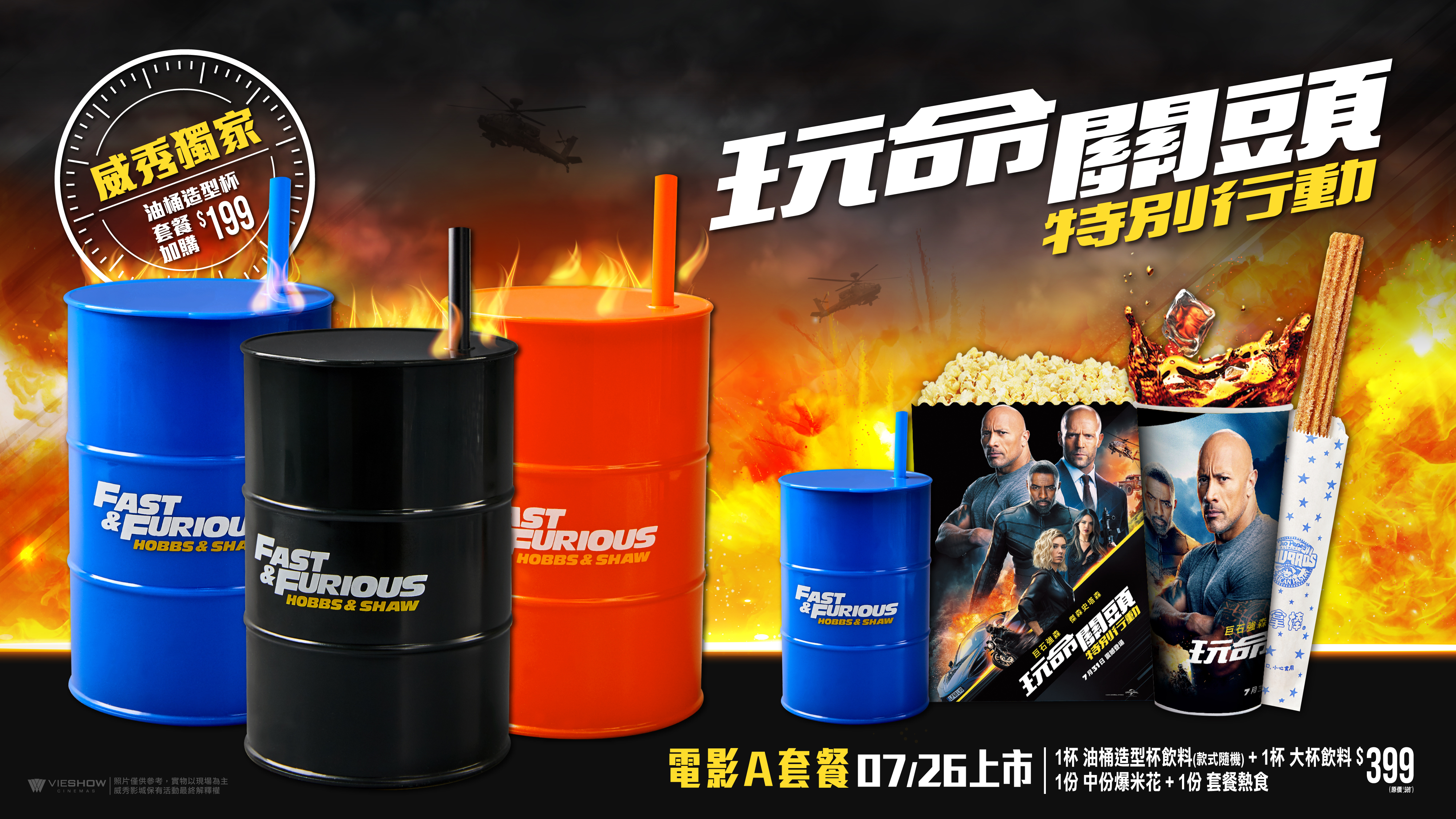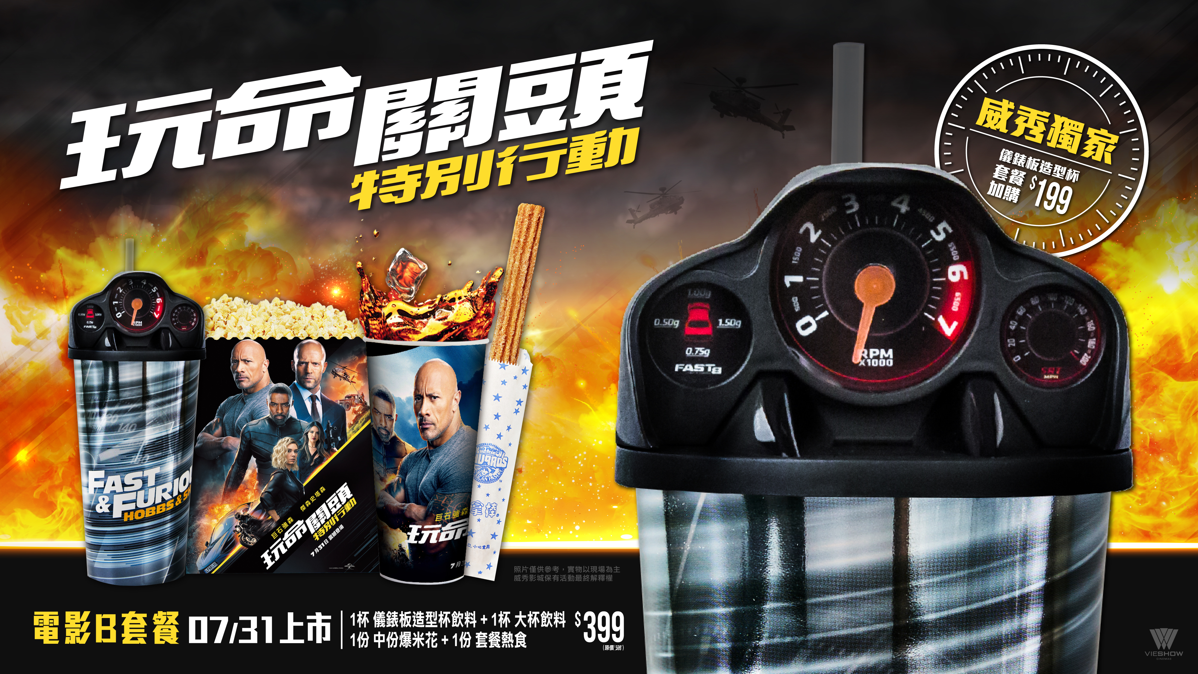 2019年08月03日萬眾矚目的《玩命關頭》系列將在07/31(三)將推出獨立番外篇《玩命關頭:特別行動》,為了讓粉絲們能在觀影過程中,也能體驗玩命的快感,威秀影城獨家推出3款硬漢風格造型杯,讓影迷看完電影後還能將爽感帶著走!